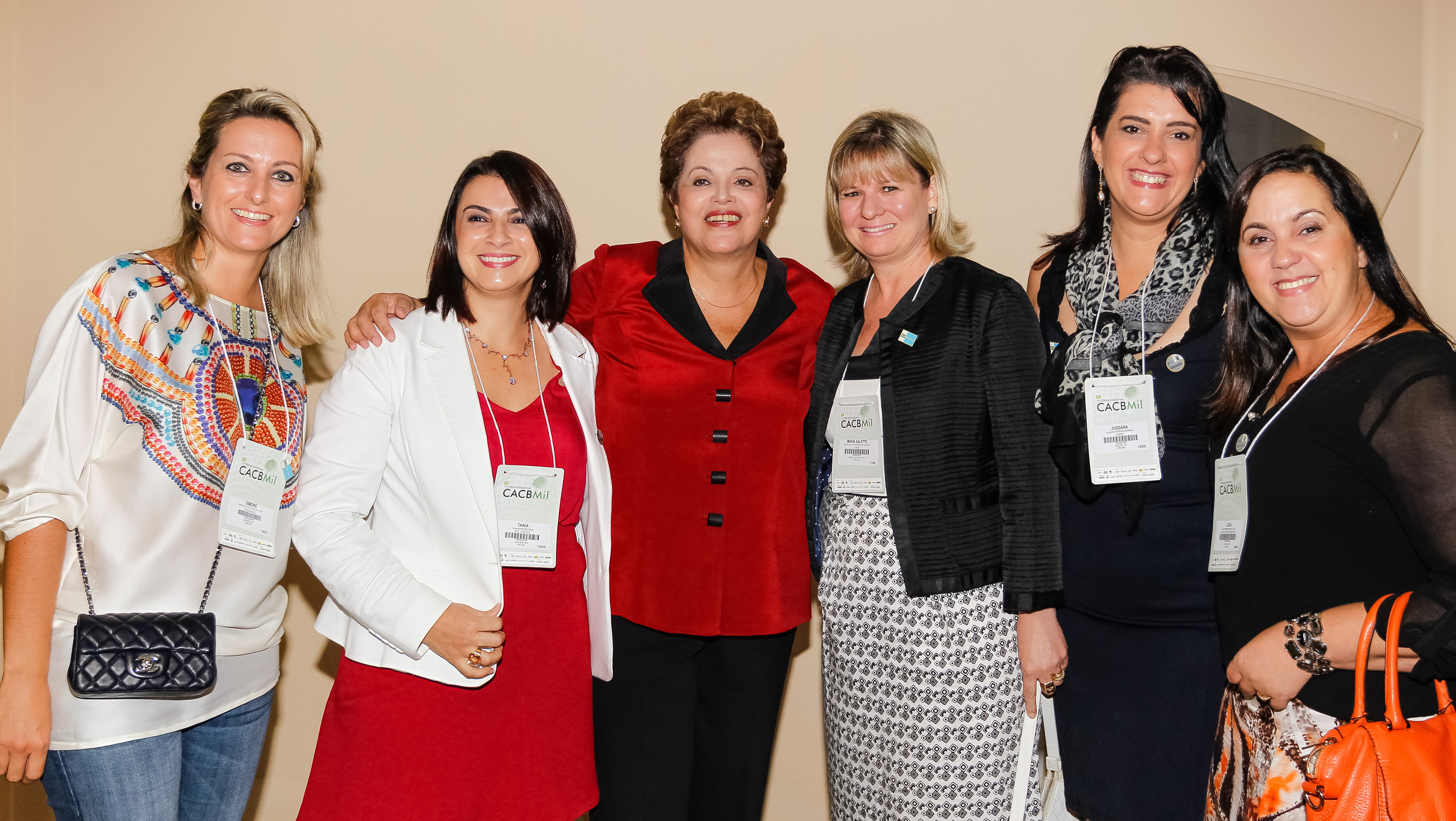 Presidenta Dilma Rousseff cumprimenta e posa para foto com participantes do evento durante o 1º Fórum Nacional CACB Mil. (Brasília - DF, 03/04/2014)