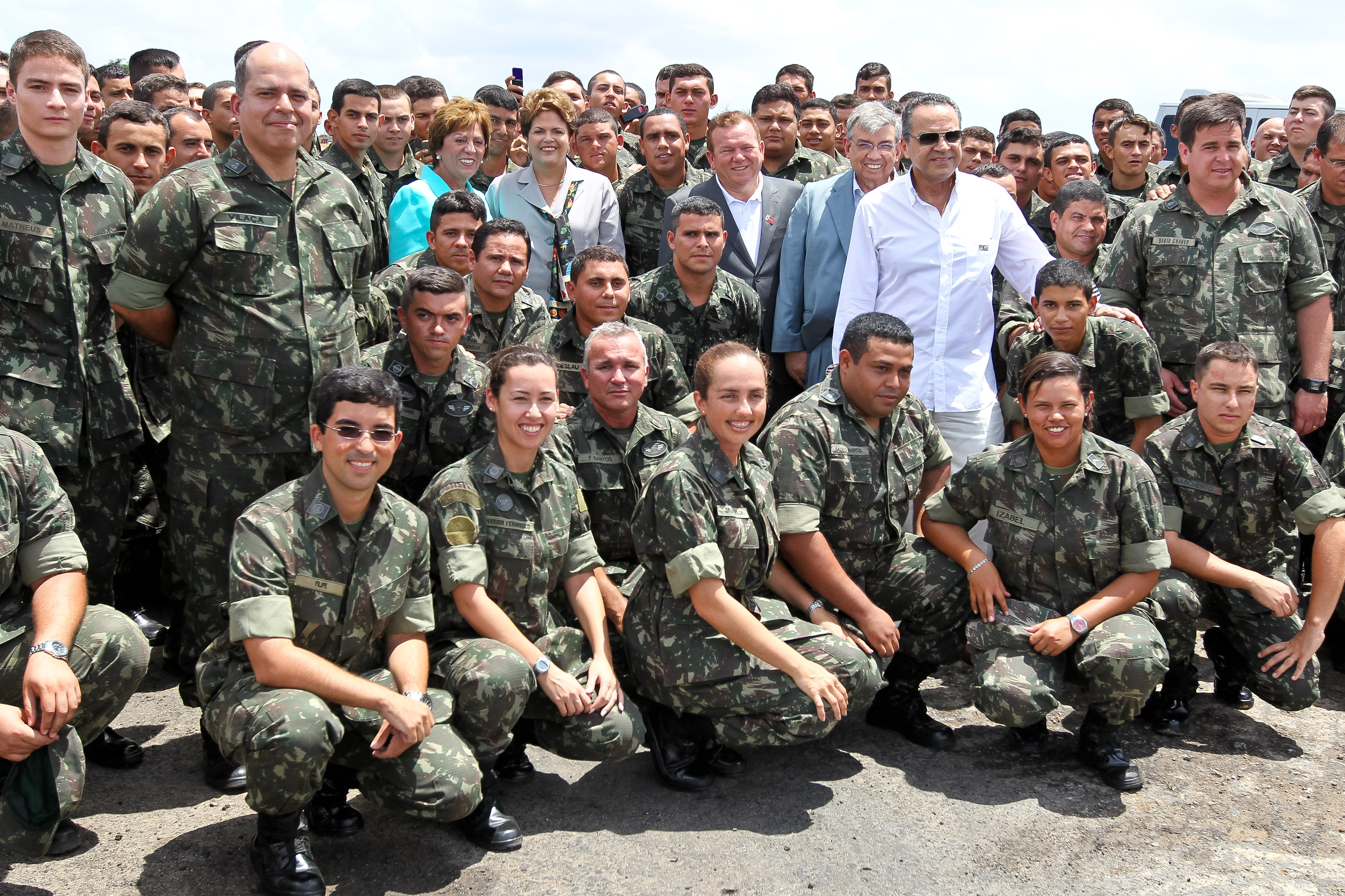Presidenta Dilma Rousseff posa para foto com trabalhadores do exército responsáveis pela construção da pista do Aeroporto Internacional de São Gonçalo. (São Gonçalo do Amarante - RN, 28/11/2011)