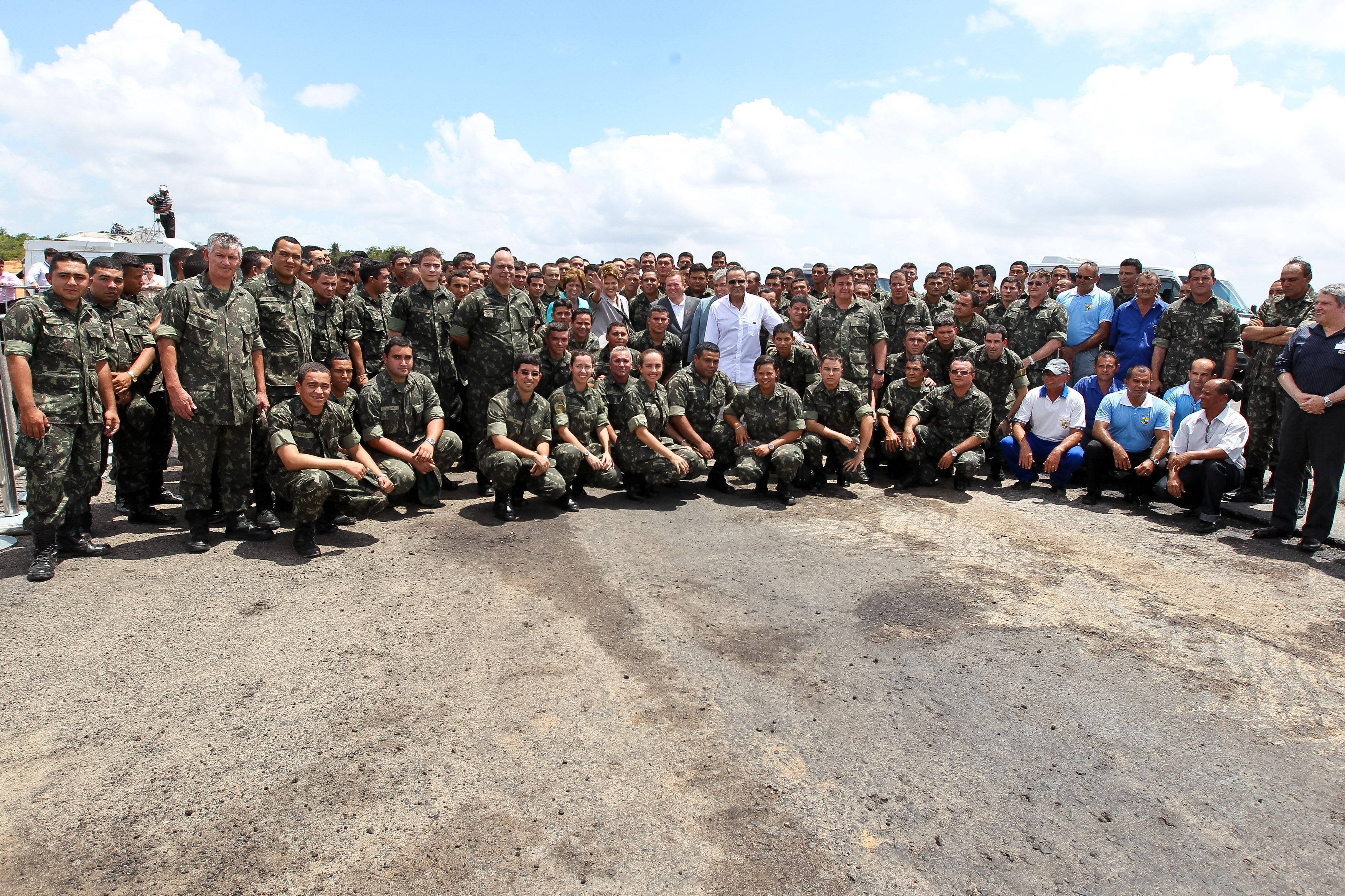 Presidenta Dilma Rousseff posa para foto com trabalhadores do exército responsáveis pela construção da pista do Aeroporto Internacional de São Gonçalo. (São Gonçalo do Amarante - RN, 28/11/2011)