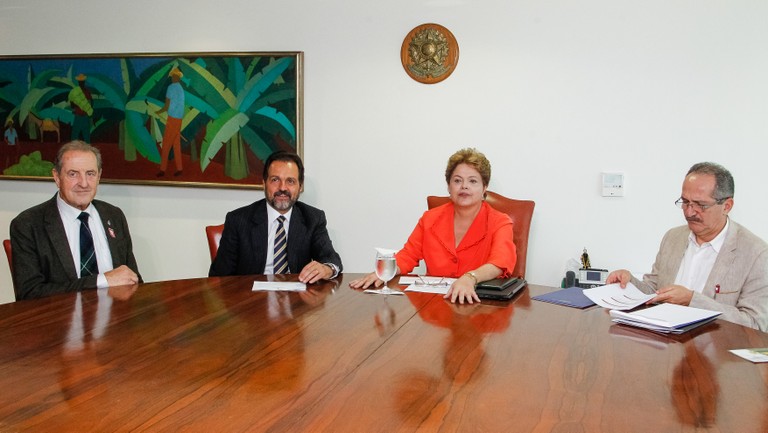 Presidenta Dilma Rousseff recebe Claude-Louis Gallien, Presidente da FISU, Agnelo Queiroz, Governador de Brasília e o Aldo Rebelo, Ministro do Esporte. (Brasília - DF, 17/10/2013)