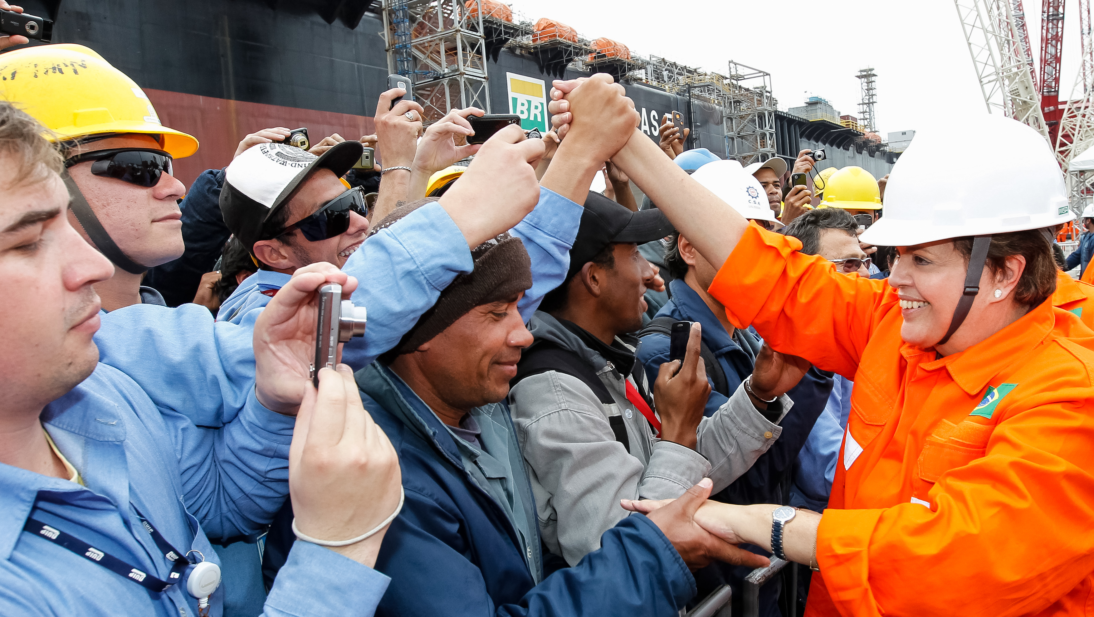 Presidenta Dilma Rousseff cumprimenta trabalhadores durante visita ao local de construção da P-58 no Estaleiro Quip. (Rio Grande - RS, 17/09/2012)