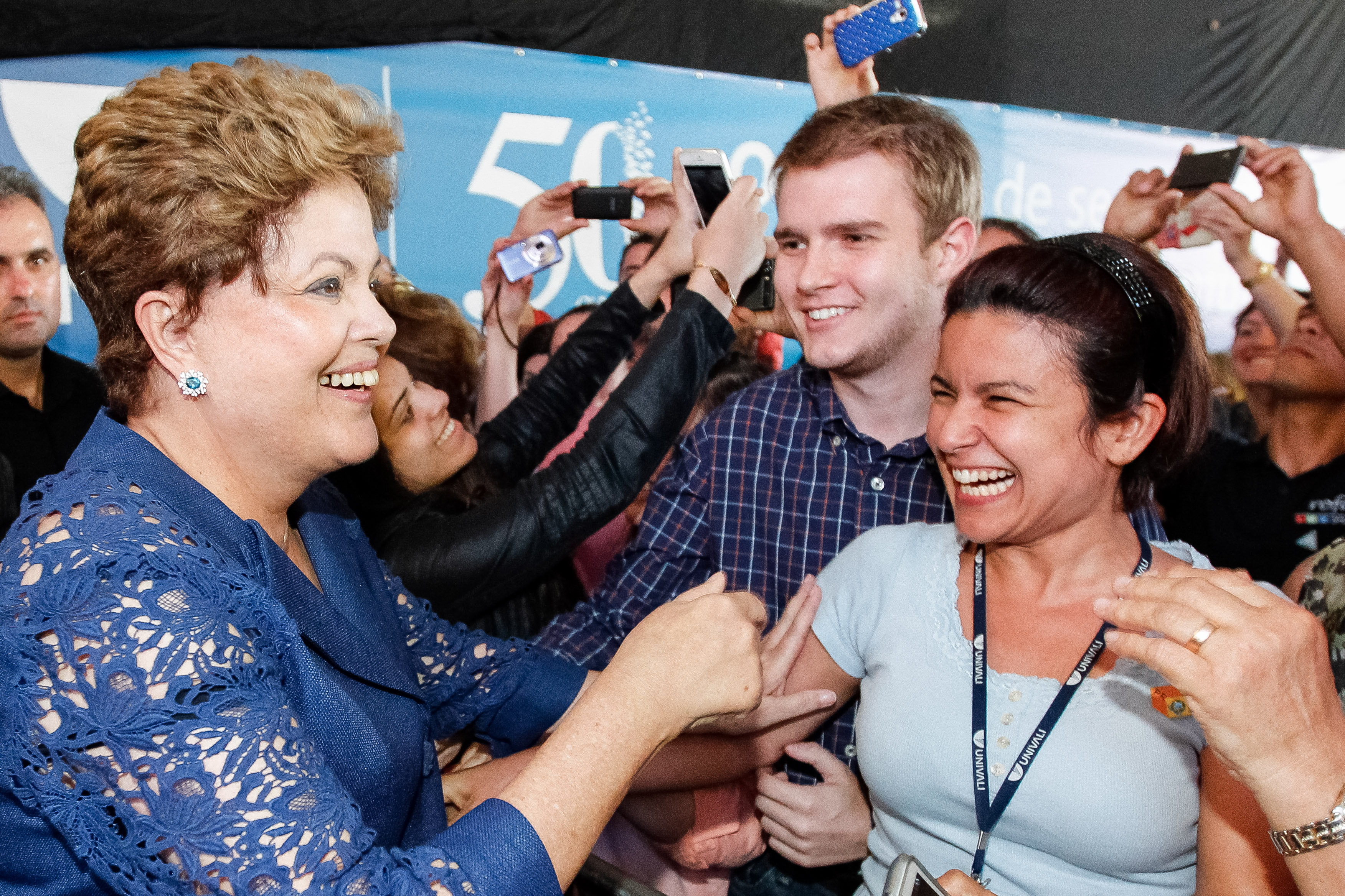 Presidenta Dilma Rousseff cumprimenta e posa para fotos com alunos, professores e funcionários da UNIVALI após cerimônia de assinatura da ordem de serviço das obras de ampliação das Barragens de Taió e Ituporanga. (Itajaí - SC, 27/11/2013)