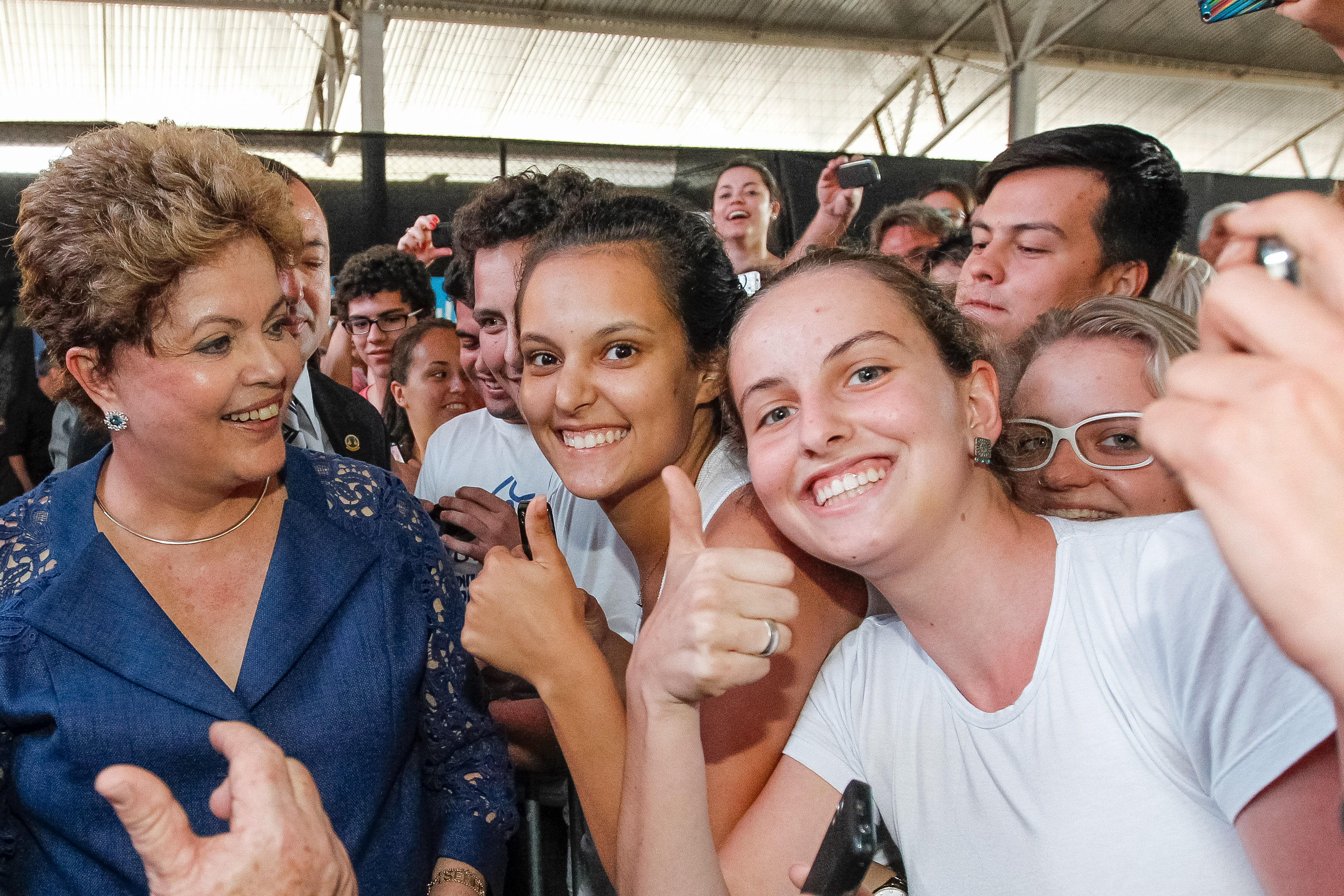 Presidenta Dilma Rousseff cumprimenta e posa para fotos com alunos, professores e funcionários da UNIVALI após cerimônia de assinatura da ordem de serviço das obras de ampliação das Barragens de Taió e Ituporanga. (Itajaí - SC, 27/11/2013)