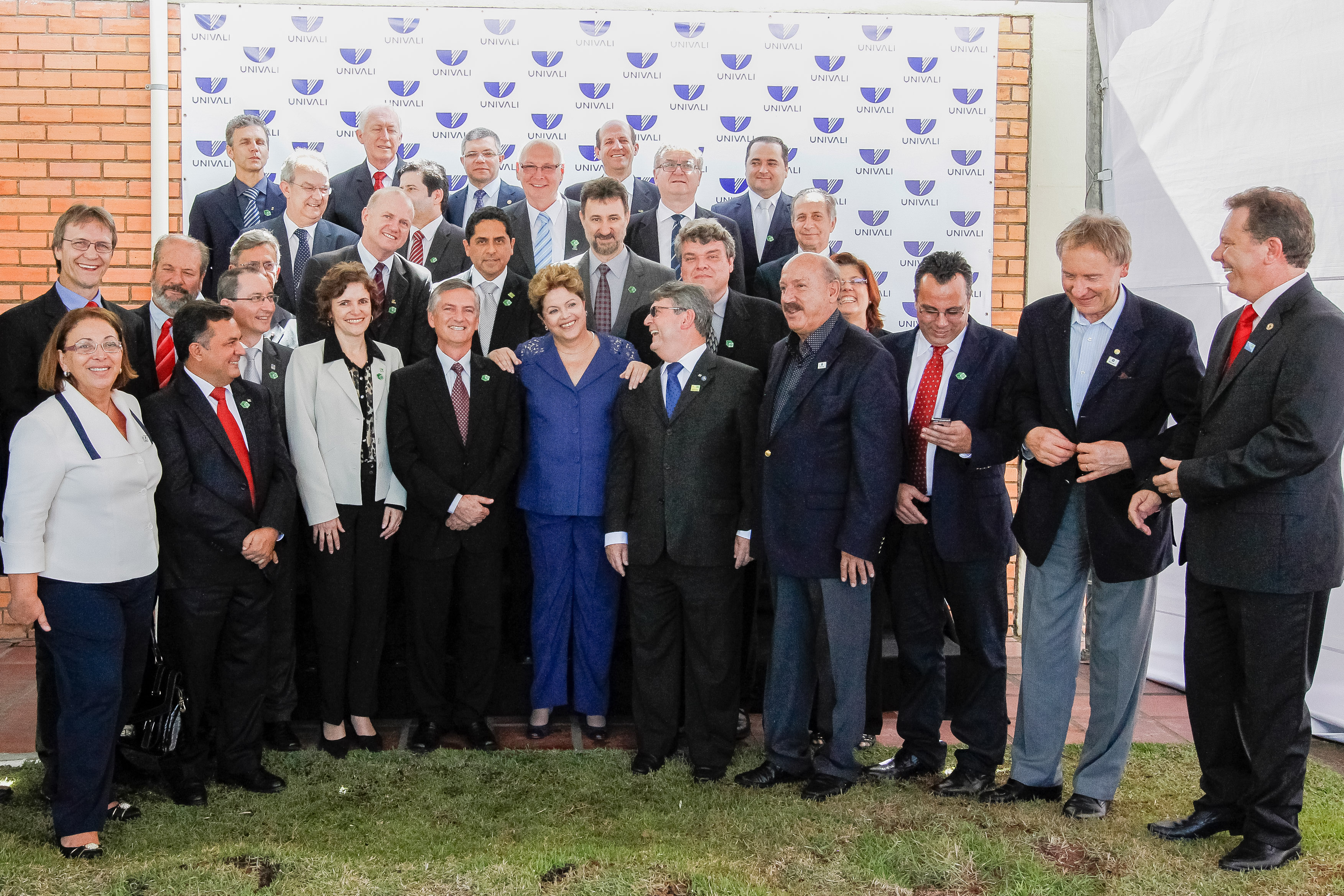 Presidenta Dilma Rousseff posa para foto com reitores durante cerimônia de assinatura da ordem de serviço das obras de ampliação das Barragens de Taió e Ituporanga. (Itajaí - SC, 27/11/2013)