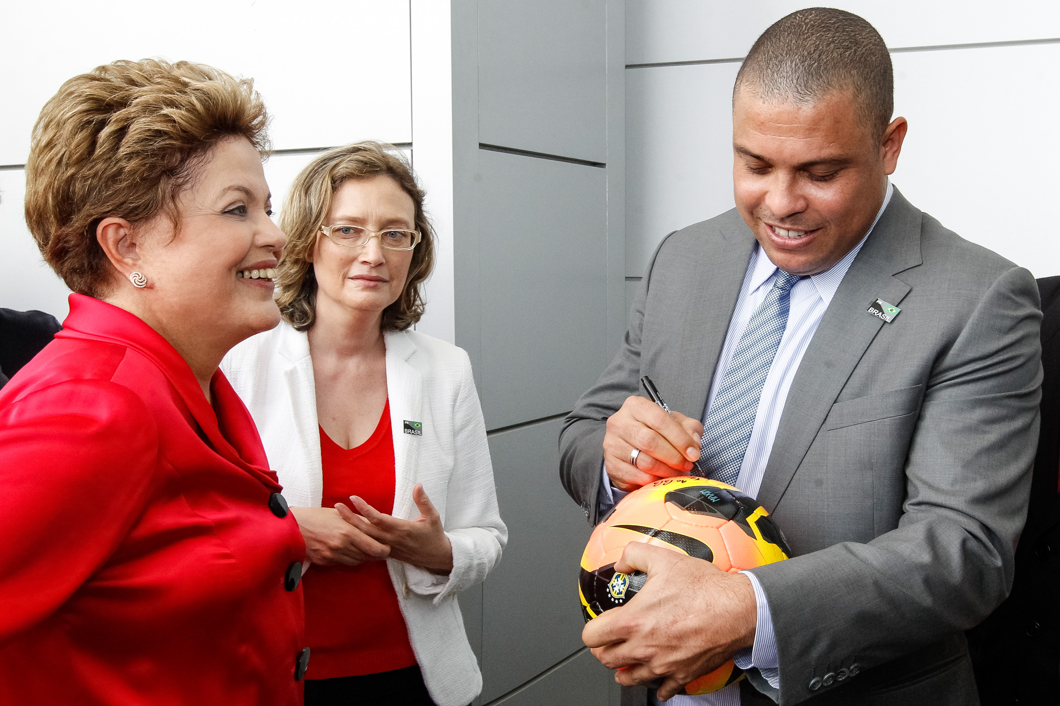 O ex jogador, Ronaldo Luís Nazário de Lima, autografa bola a ser presenteada ao Papa Francisco pela presidenta Dilma Rousseff. (Roma - Itália, 21/02/2014)