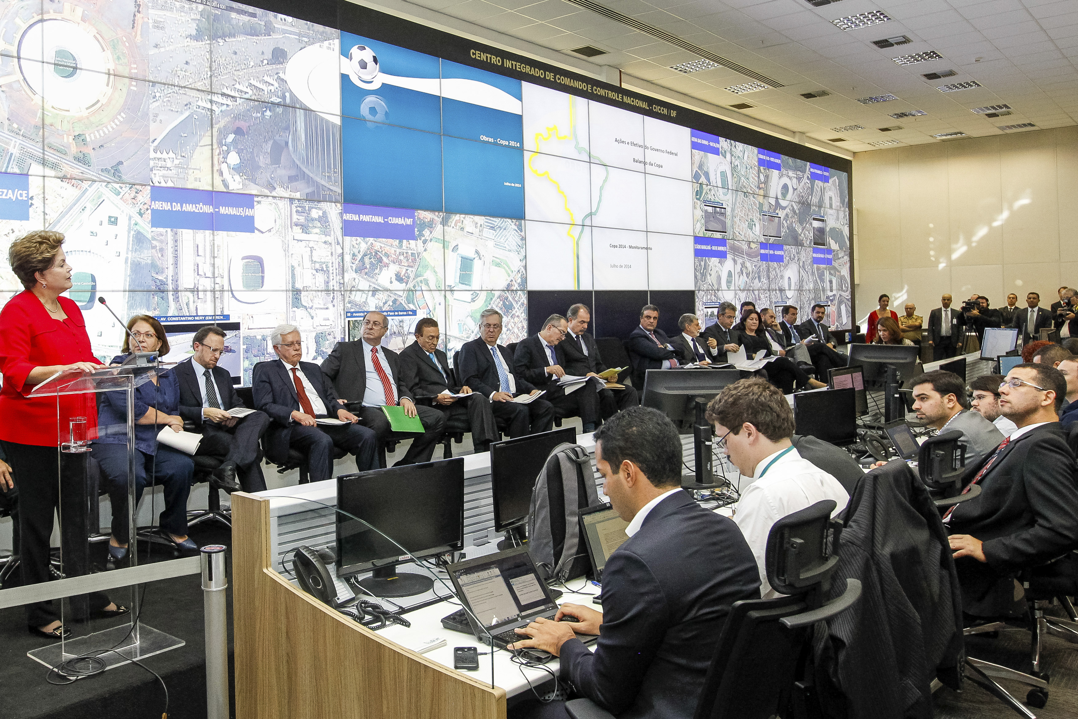 Presidenta Dilma Rousseff durante balanço geral da Copa 2014 no Centro Integrado de Comando e Controle Nacional - CICCN/DF. (Brasília - DF, 14/07/2014)