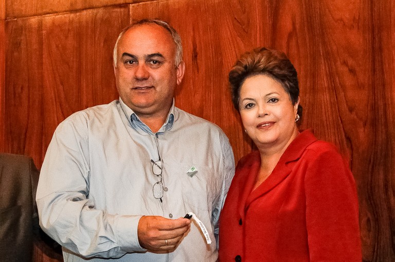 Presidenta Dilma Rousseff posa para foto com escoteiras, durante cerimônia de anúncio do PAC Mobilidade e de entrega de 57 Máquinas Motoniveladoras