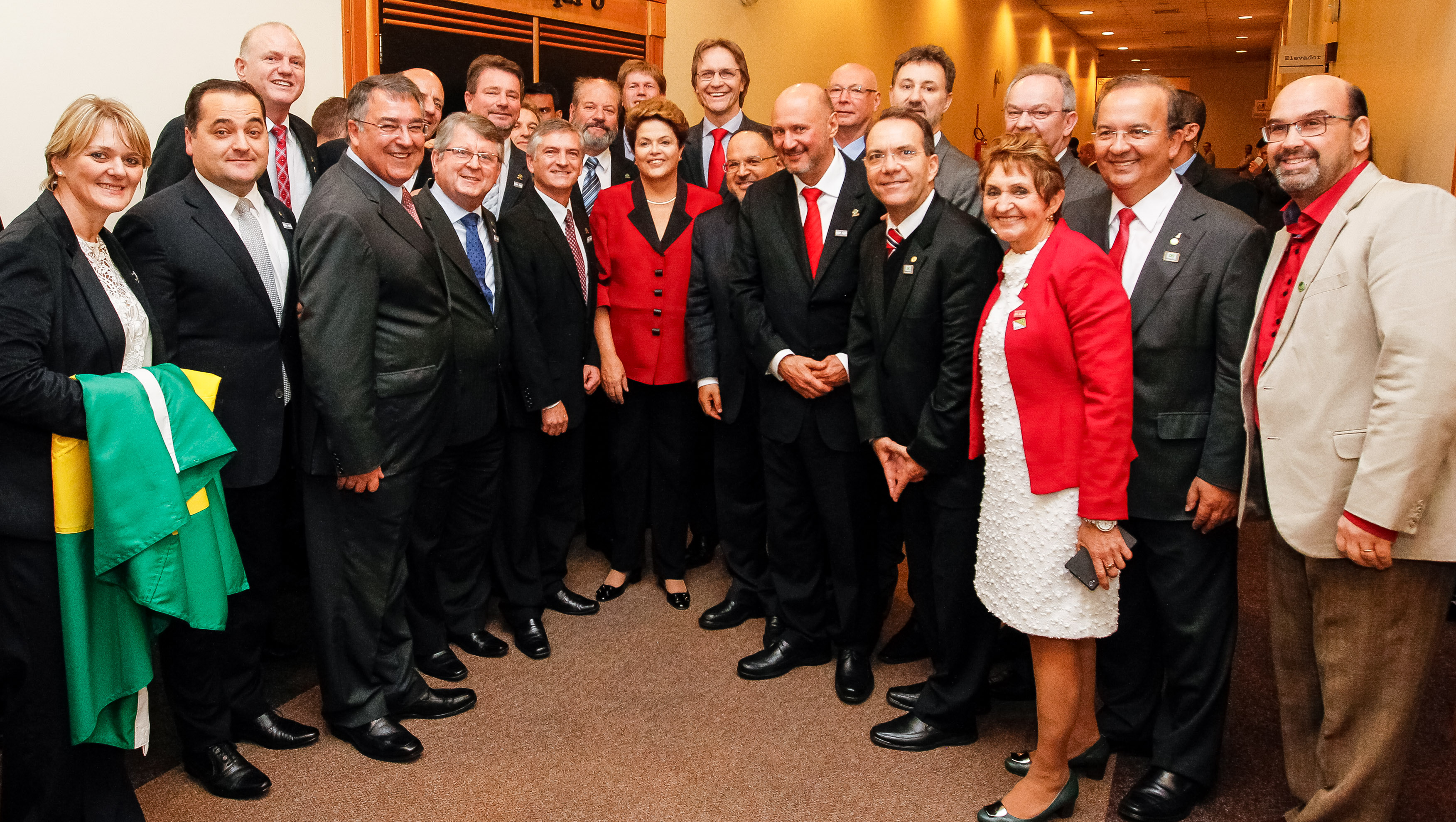 Presidenta Dilma Rousseff posa para foto com reitores após cerimônia de anúncios para o estado de Santa Catarina. (Florianópolis - SC, 06/06/2014)