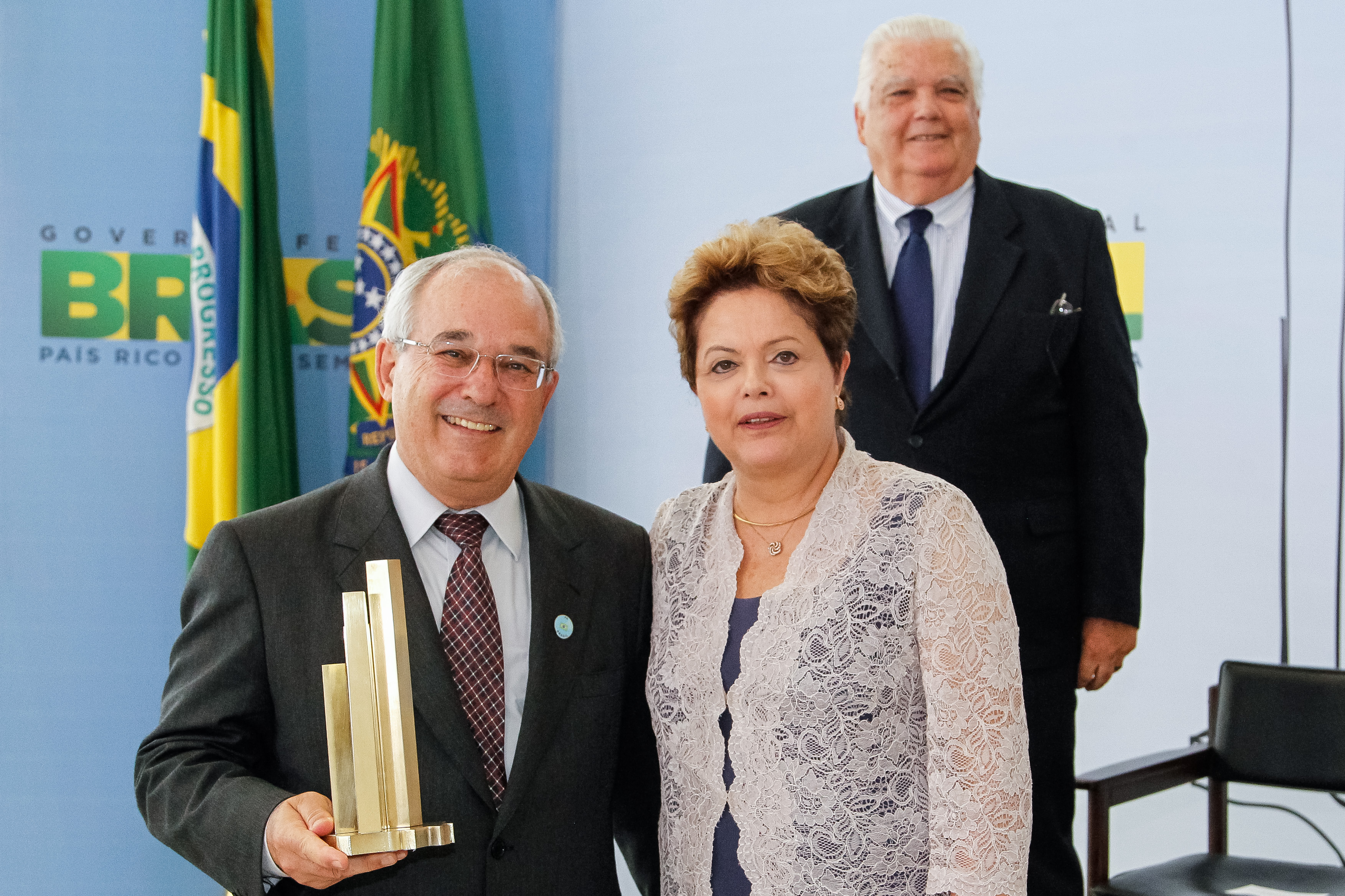 Presidenta Dilma Rousseff e o vencedor da categoria Instituição de Ciência e Tecnologia, Cláudio Aparecido Violato da CPQD durante cerimônia de entrega da 16ª edição do Prêmio Finep de Inovação. (Brasília - DF, 04/12/2013)