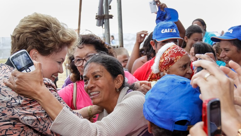 Presidenta Dilma Rousseff cumprimenta populares, durante cerimônia de entrega de 1.740 unidades habitacionais dos Residenciais Acácia, Ipê, Pau Brasil e Jequibitá, do Programa Minha Casa Minha Vida II. (Vitória da Conquista - BA, 15/10/2013)