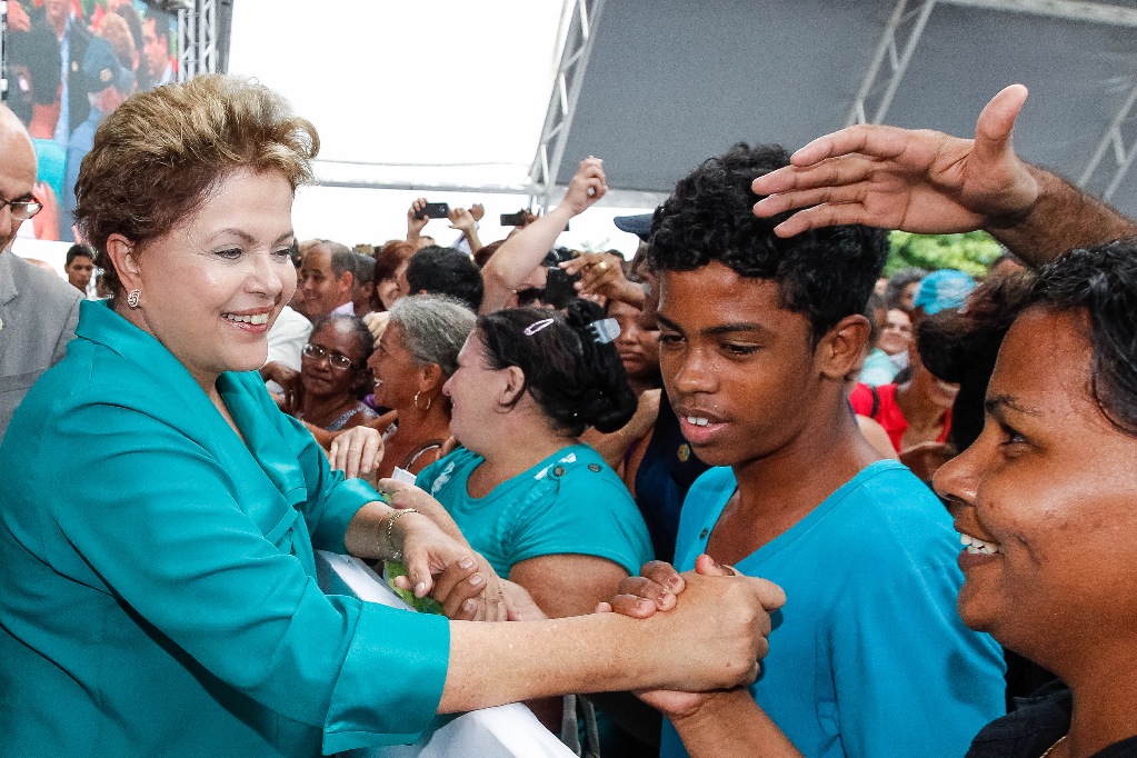 Presidenta Dilma Rousseff posa com populares durante cerimônia de entrega de 1.788 unidades habitacionais do Residencial Costa Esmeralda I, II, III e IV, do Programa Minha Casa Minha Vida. (Araguaína - TO, 14/03/2014)