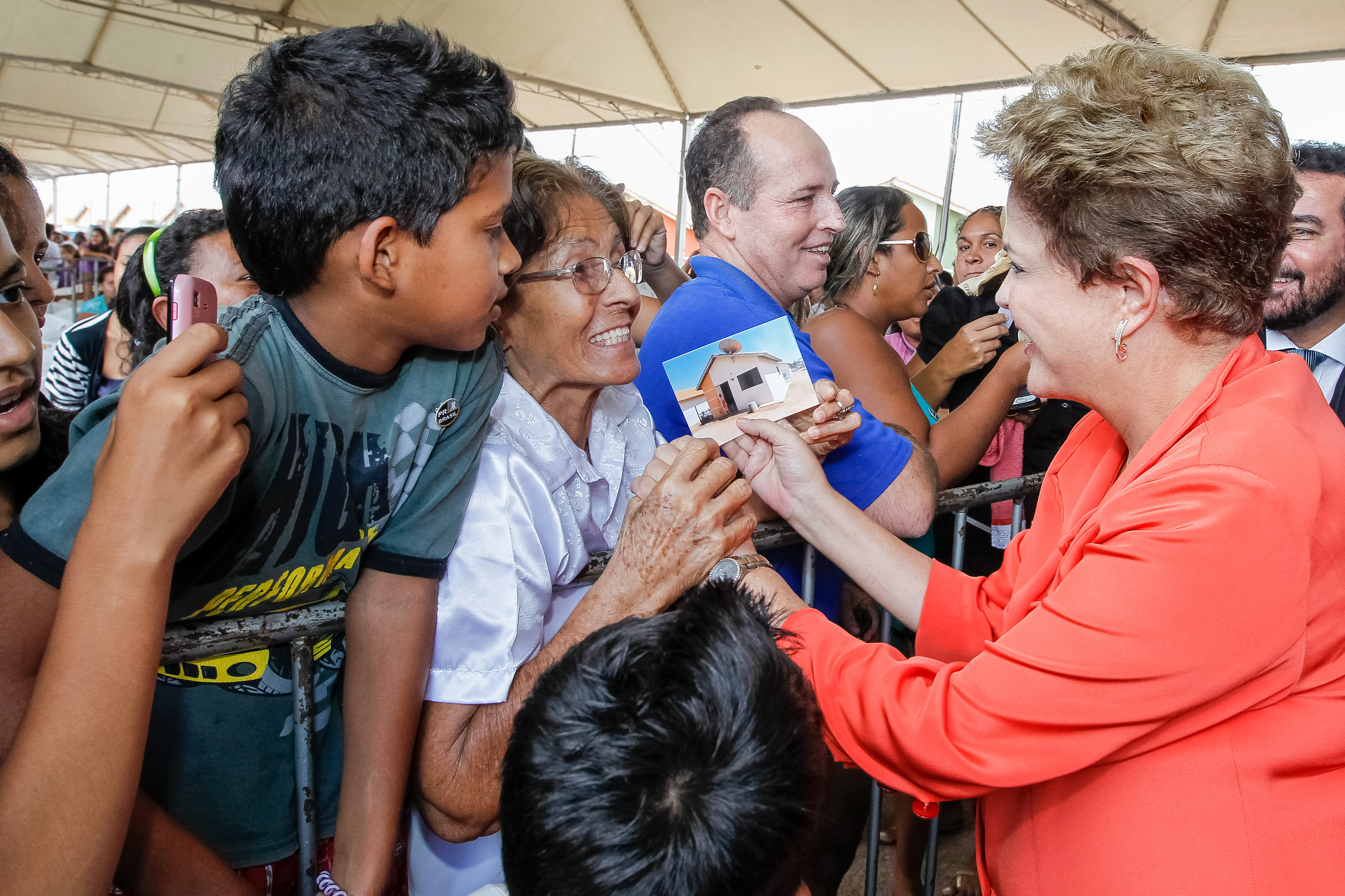 Presidenta Dilma Rousseff posa para foto com populares durante cerimônia de entrega de 638 unidades habitacionais do Residencial Altos do Parque II, do programa Minha Casa Minha Vida. (Cuiabá - MT, 24/04/2014)