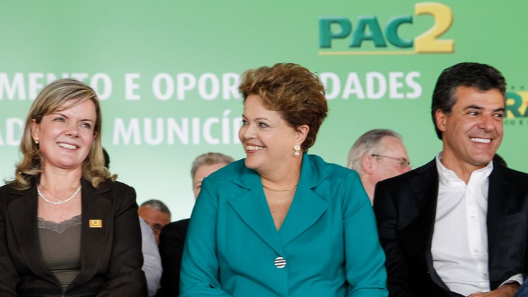 Presidenta Dilma Rousseff durante cerimônia de entrega de máquinas e de assinatura de ordens de serviço da BR-158/PR, trecho Campo Mourão-Palmital, e da BR-487/PR, trecho Nova Brasília-Tuneiras do Oeste. (Campo Mourão - Paraná, 04/09/2013)