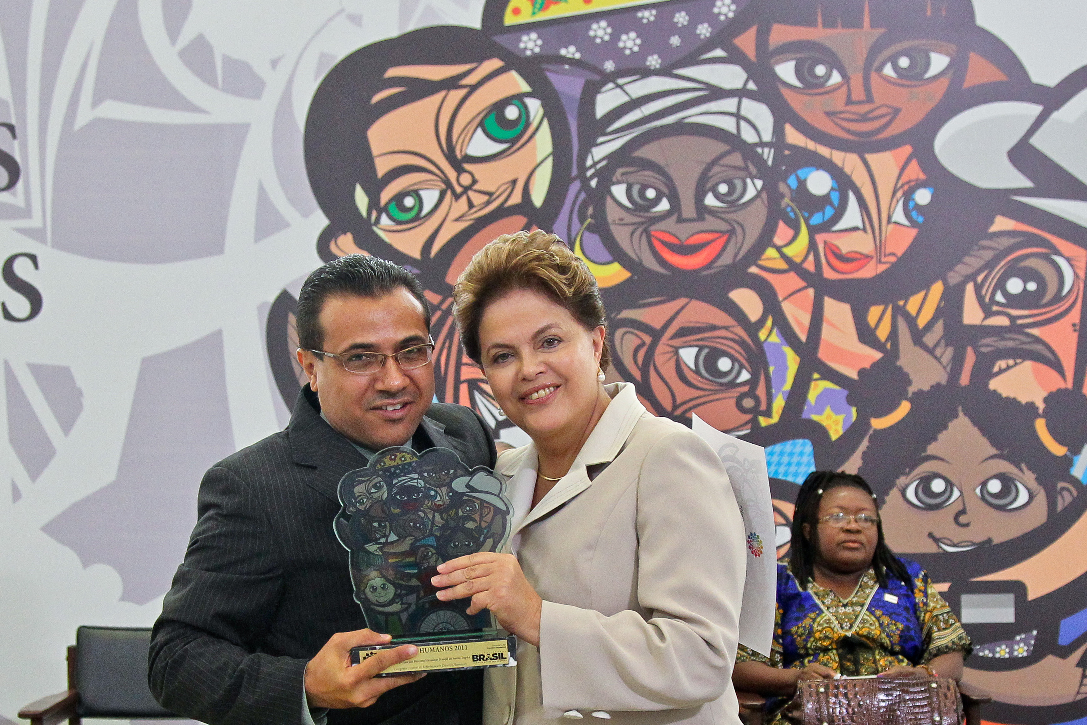 Presidenta Dilma Rousseff entrega o Prêmio Direitos Humanos 2011 na categoria Centro de Referência em Direitos Humanos, ao Centro de Defesa da Cidadania e dos Direitos Humanos Marçal de Souza Tupã-I, representada pelo Sr. Paulo Ângelo de Souza. (Brasília - DF, 09/12/2011)