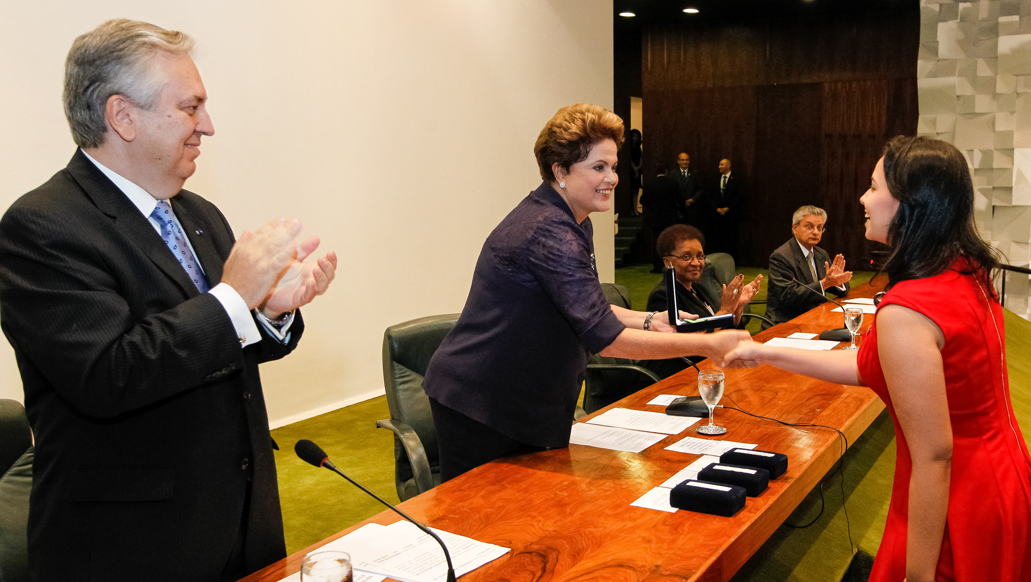 Presidenta Dilma Rousseff entrega o prêmio Lafayette de Carvalho e Silva, Medalha de vermeil, a Secretária Laura Berdine Santos Delamonica, pelo 1º lugar no Concurso de Admissão à Carreira de Diplomata de 2012 durante cerimônia de formatura da turma 2012-2014 do Instituto Rio Branco. (Brasília - DF, 30/04/2014)