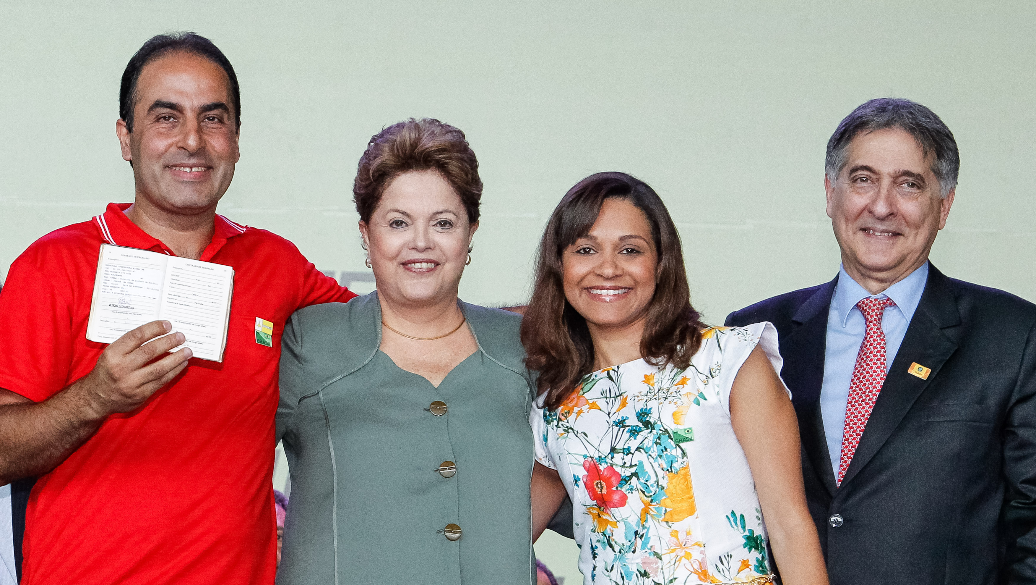 Presidenta Dilma Rousseff durante entrega de diploma e de cartão de identificação ao formando Tiago Henrique Oliveira Rocha, do curso de carpinteiro de obras do SENAI. (Belo Horizonte - MG, 23/10/2013)