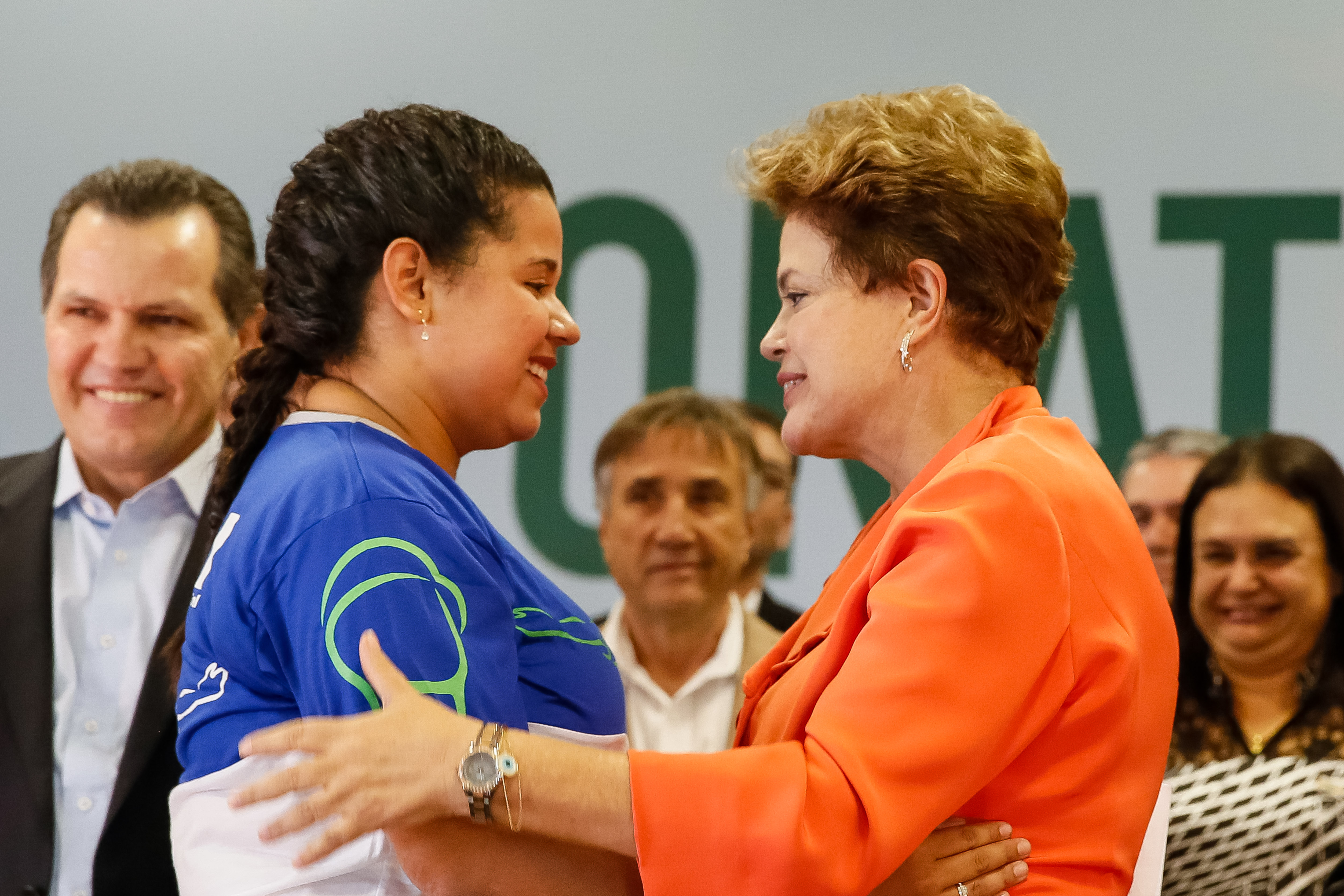 Presidenta Dilma Rousseff cumprimenta a oradora Graziele Jorge de Queiroz do Curso Técnico em Edificações pelo Senai. (Cuiabá - MT, 24/04/2014)