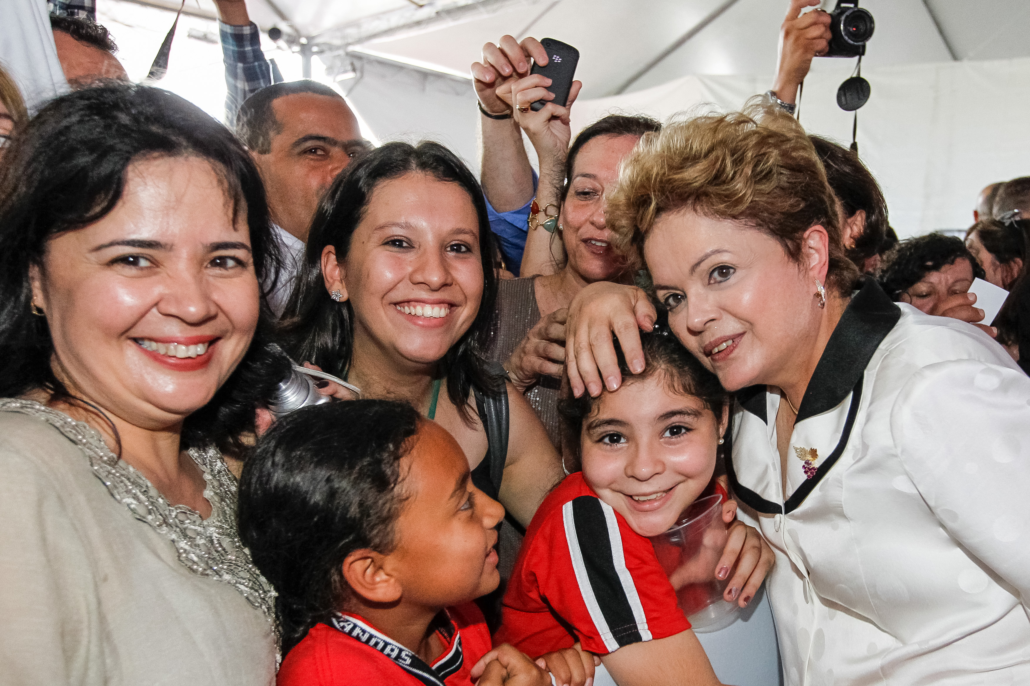 Presidenta Dilma Rousseff posa para foto com populares, durante cerimônia de inauguração da BR 448/RS. (Porto Alegre - RS, 20/12/2013)