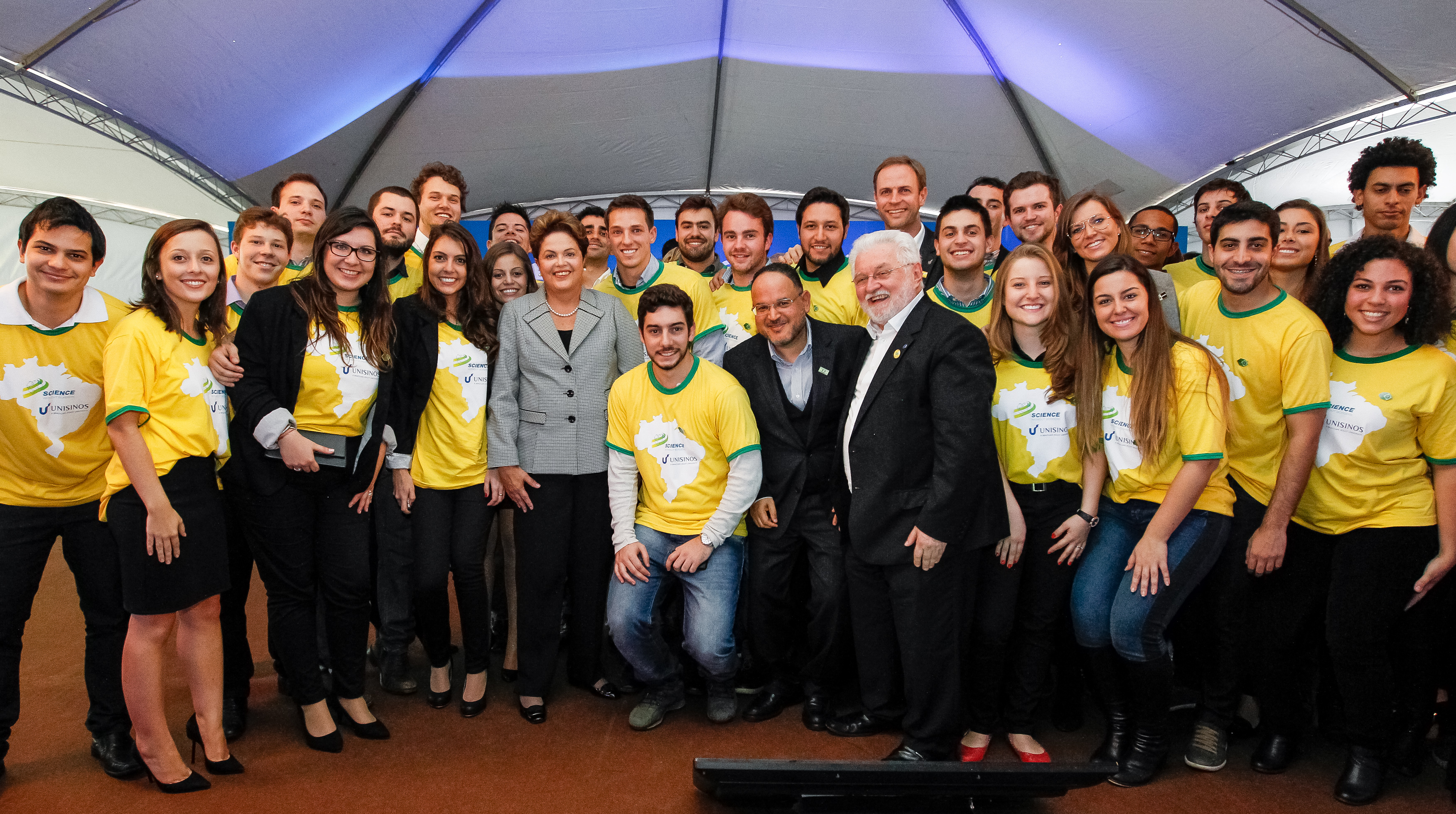 Presidenta Dilma Rousseff cumprimenta e posa para fotos com alunos da faculdade UNISINOS após cerimônia de inauguração da HT Micron.(Porto Alegre-RS 07/06/2014)