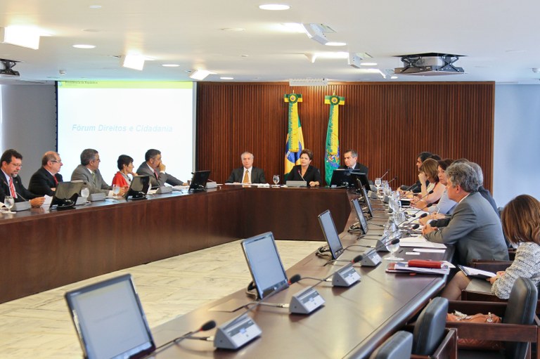 Presidenta Dilma Rousseff, o vice-presidente Michel Temer, e o ministro-chefe da Secretaria-Geral, Gilberto Carvalho, durante cerimônia de instalação do Fórum Direitos e Cidadania (Brasília, DF, 15/03/2011)