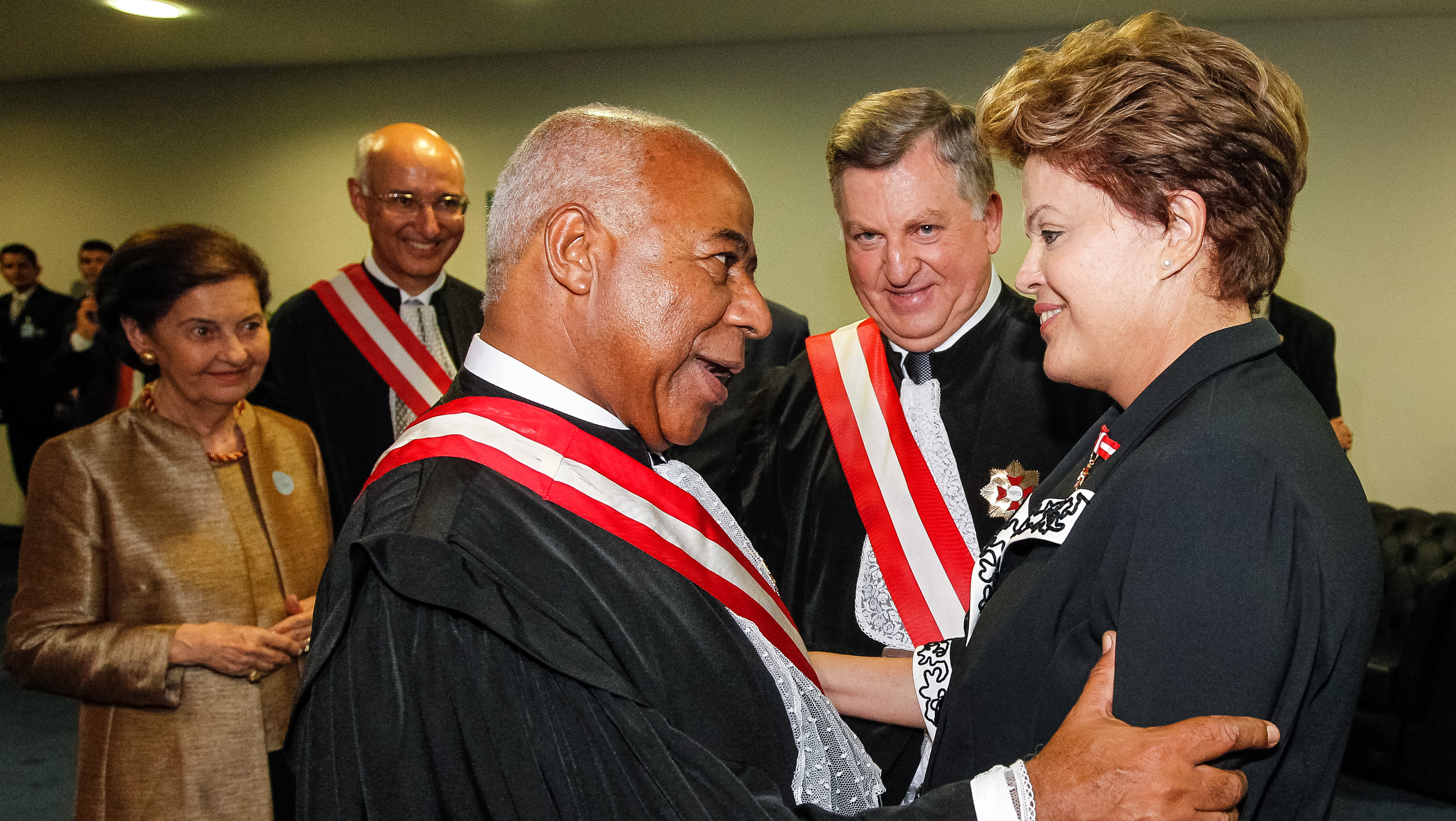 Presidenta Dilma Rousseff cumprimenta o novo Presidente do TST Carlos Alberto Reis de Paula e ao fundo o Ex-Presidente do TST João Oreste Dalazen durante cerimônia de posse dos novos dirigentes do Tribunal Superior do Trabalho (TST). (Brasília - DF, 05/03/2013)