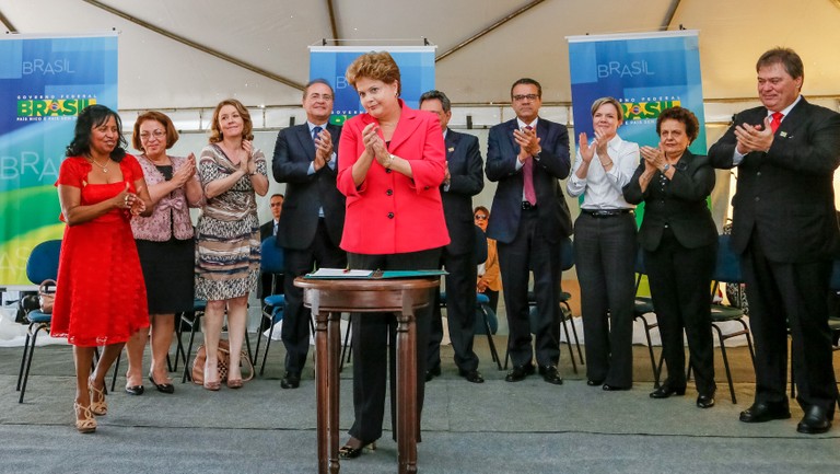 Presidenta Dilma Rousseff durante cerimônia de sanção da MP 615 no núcleo de apoio aos taxistas – Sinpetaxi. (Brasília - DF, 09/10/2013)