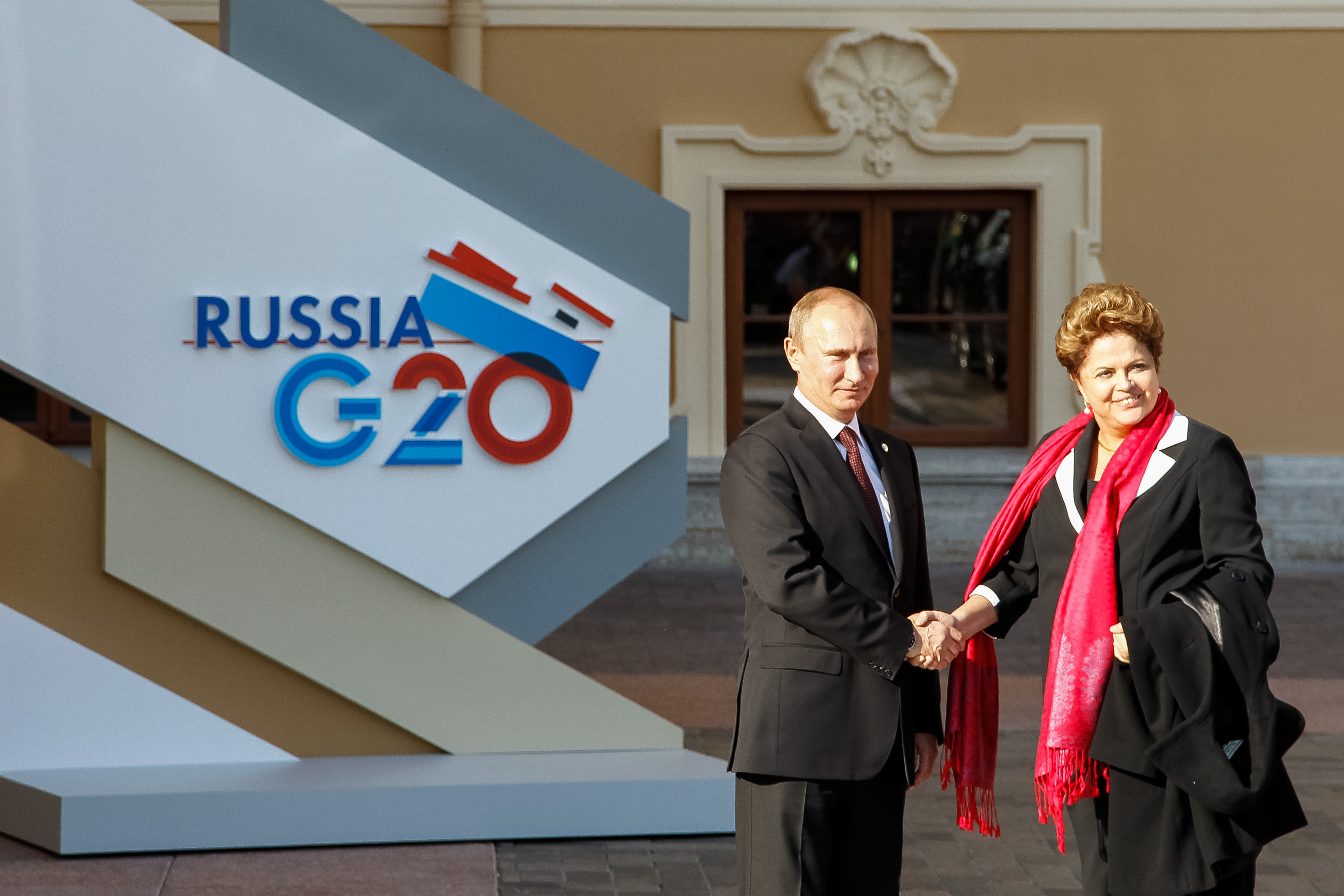 Presidenta Dilma Rousseff recebe cumprimentos do Presidente da Rússia, Vladimir Putin durante cerimônia oficial de boas-vindas do G-20. (São Petersburgo - Rússia, 05/09/2013)
