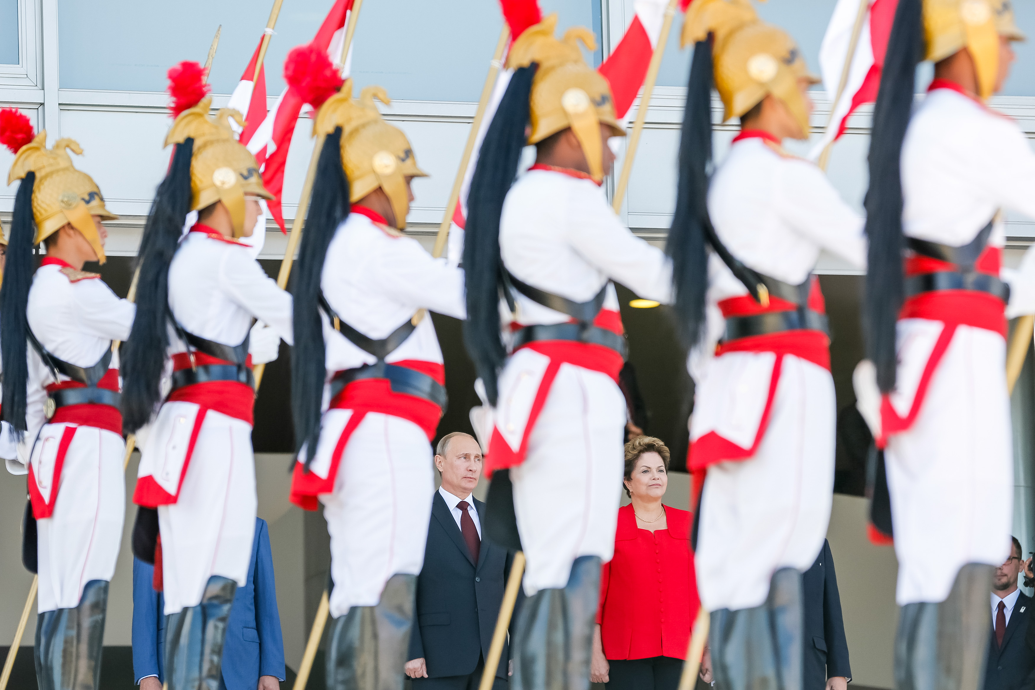 Presidenta Dilma Rousseff durante cerimônia oficial de chegada do Presidente da Rússia, Vladimir Putin. (Brasília - DF, 14/07/2014)