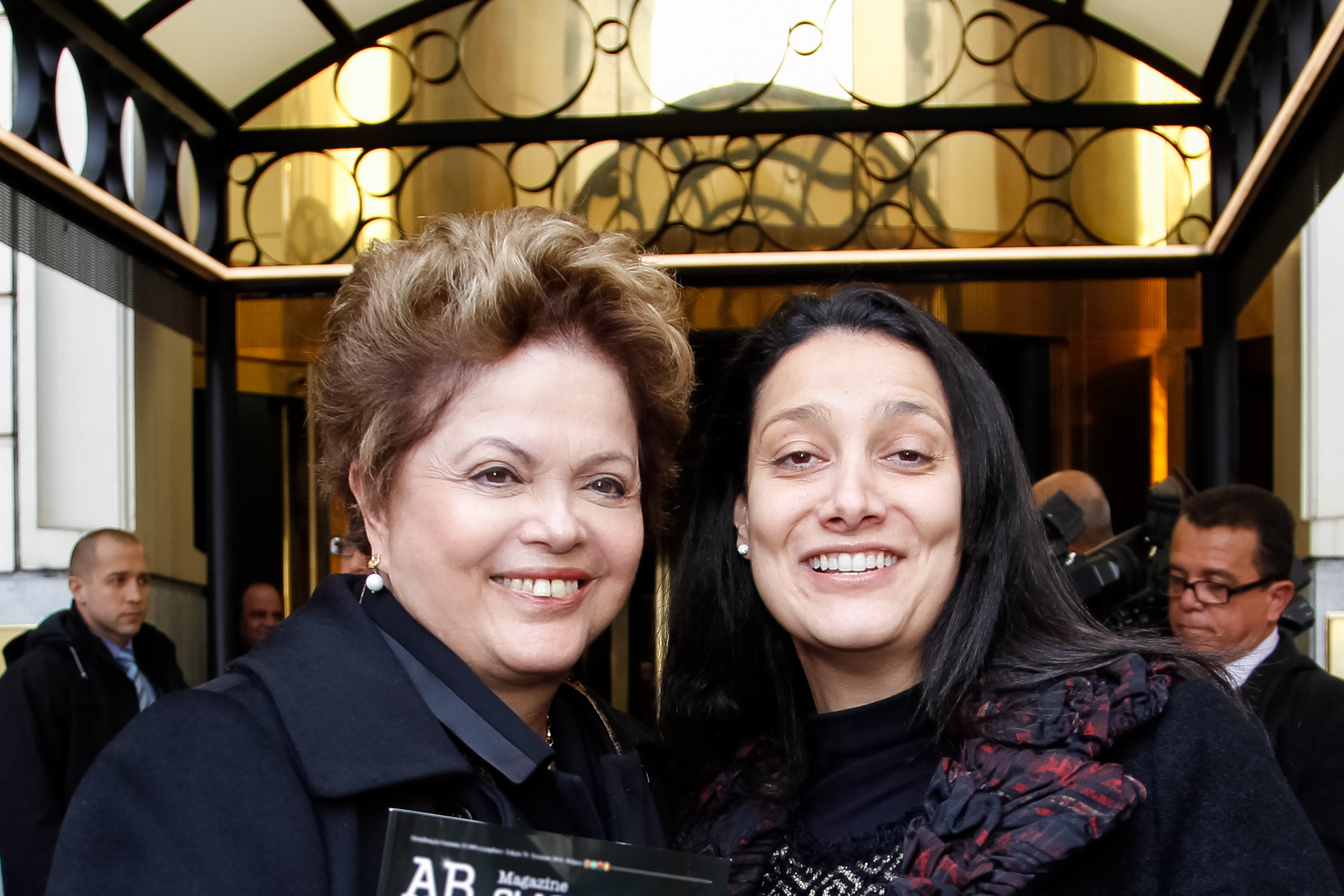Presidenta Dilma Rousseff posa para foto com brasileira durante sua chegada à Bélgica. (Bruxelas - Bélgica, 23/02/2014)