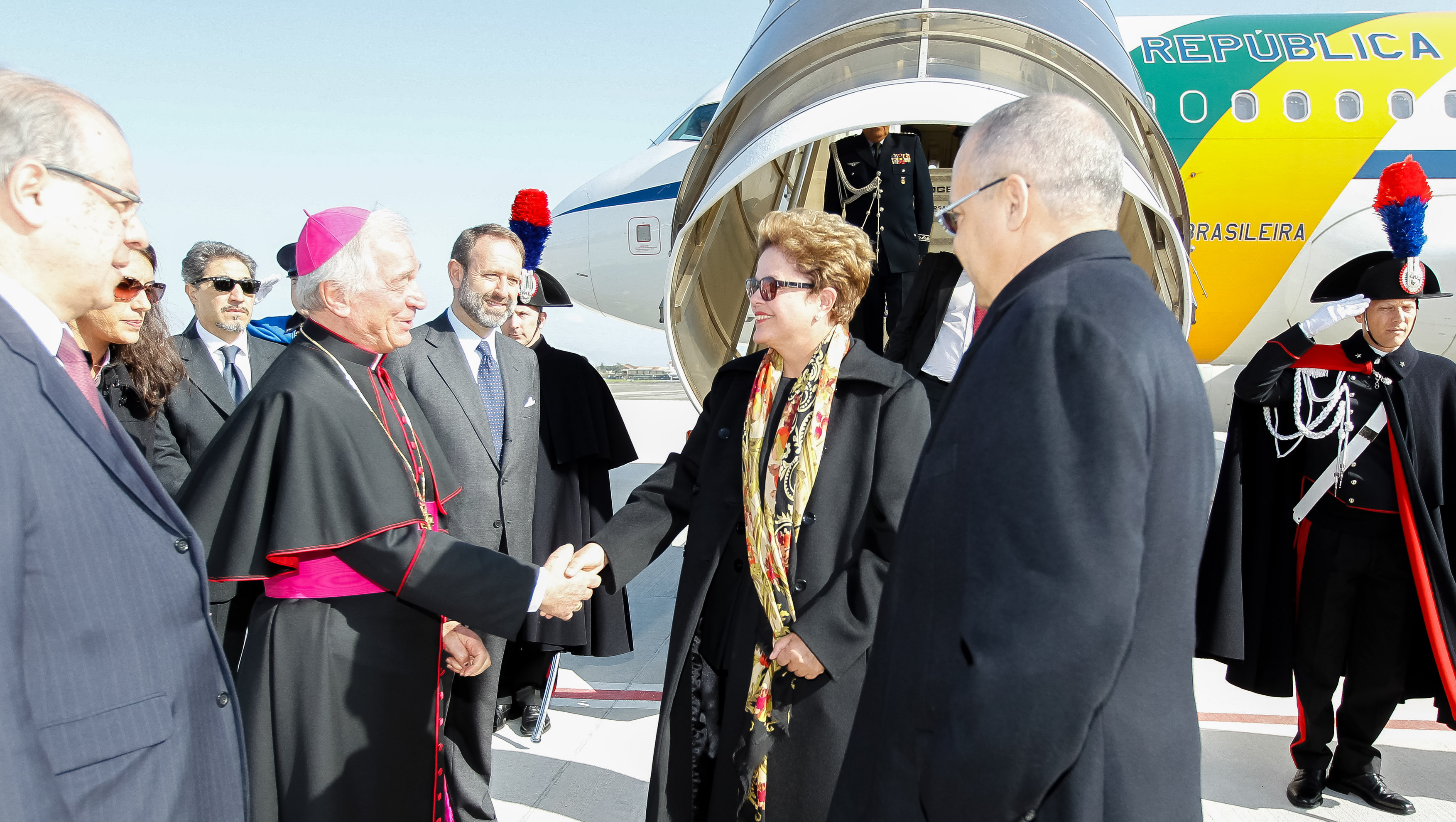 Presidenta Dilma Rousseff recebe cumprimentos durante chegada a Roma. (Roma - Itália, 21/02/2014)