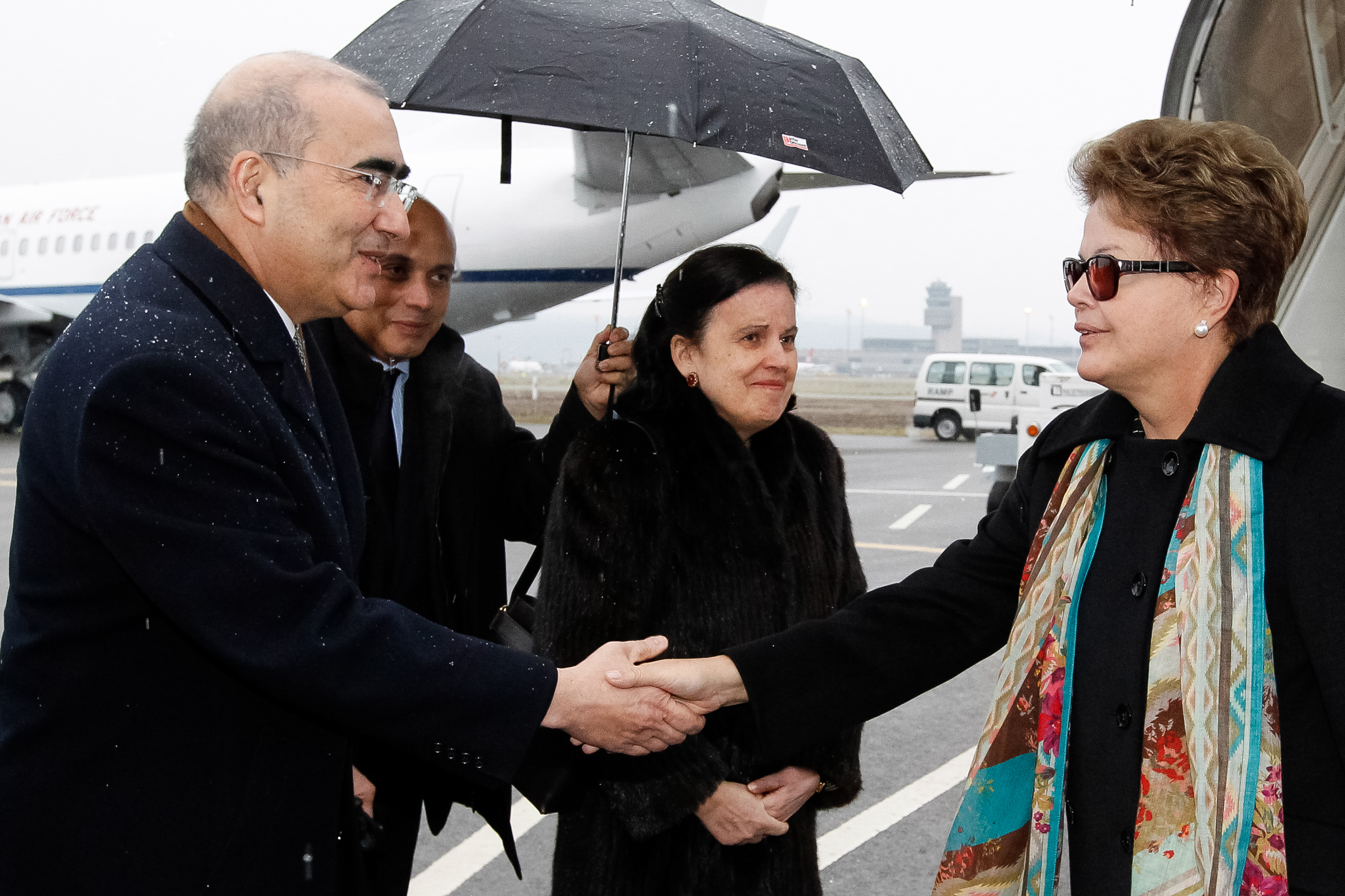 Presidenta Dilma Rousseff recebe cumprimentos durante sua chegada a Suíça. (Zurique - Suíça, 23/01/2014)