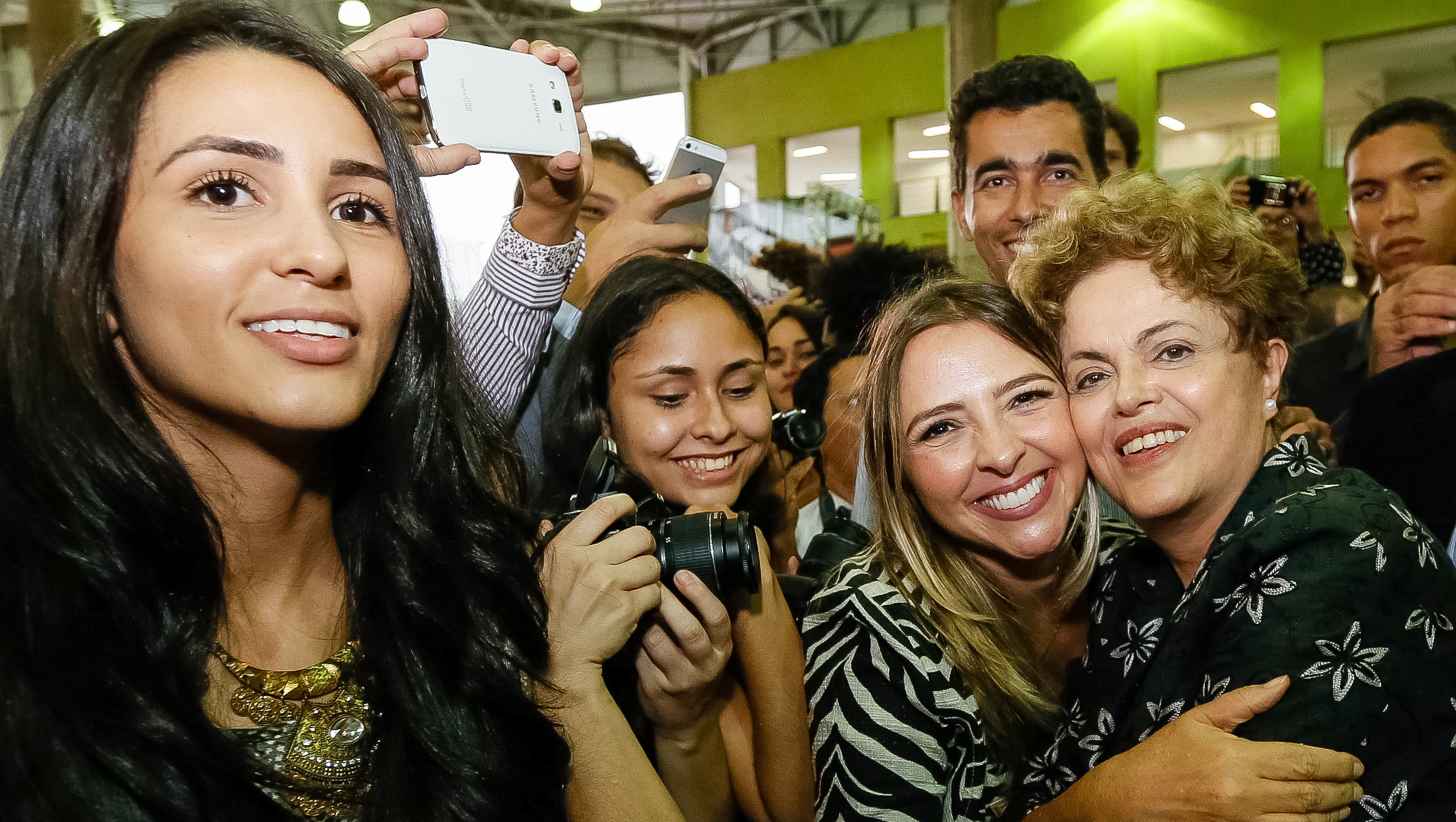 Presidenta Dilma Rousseff durante cerimônia alusiva à assinatura de ordem de serviço de implantação do BRT Norte-Sul (Goiânia - GO, 19/03/2015)