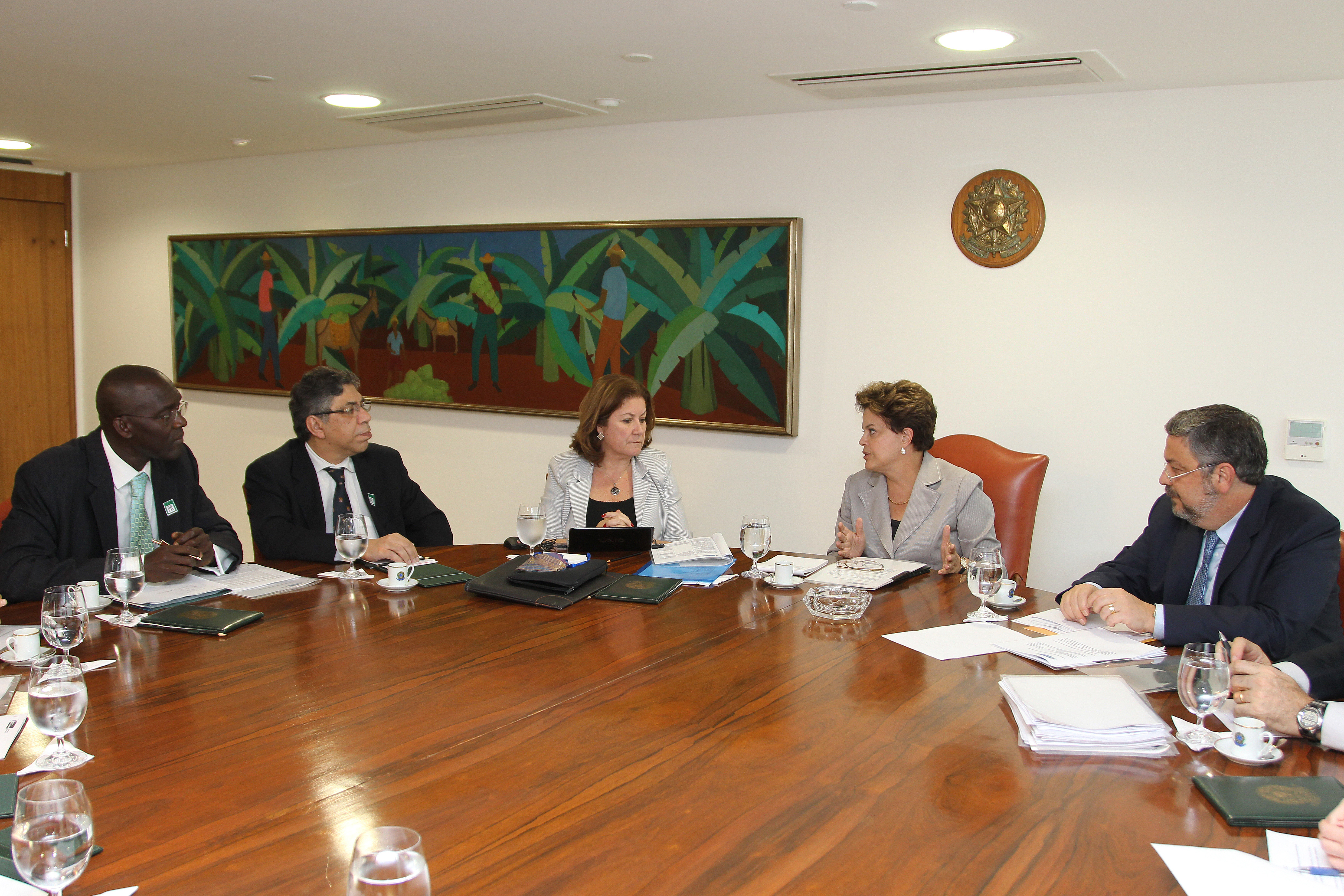 Dilma em reunião com vice-presidente do Banco Mundial, Otaviano Canuto, e o diretor do Banco Mundial para o Brasil, Makhtar Diop