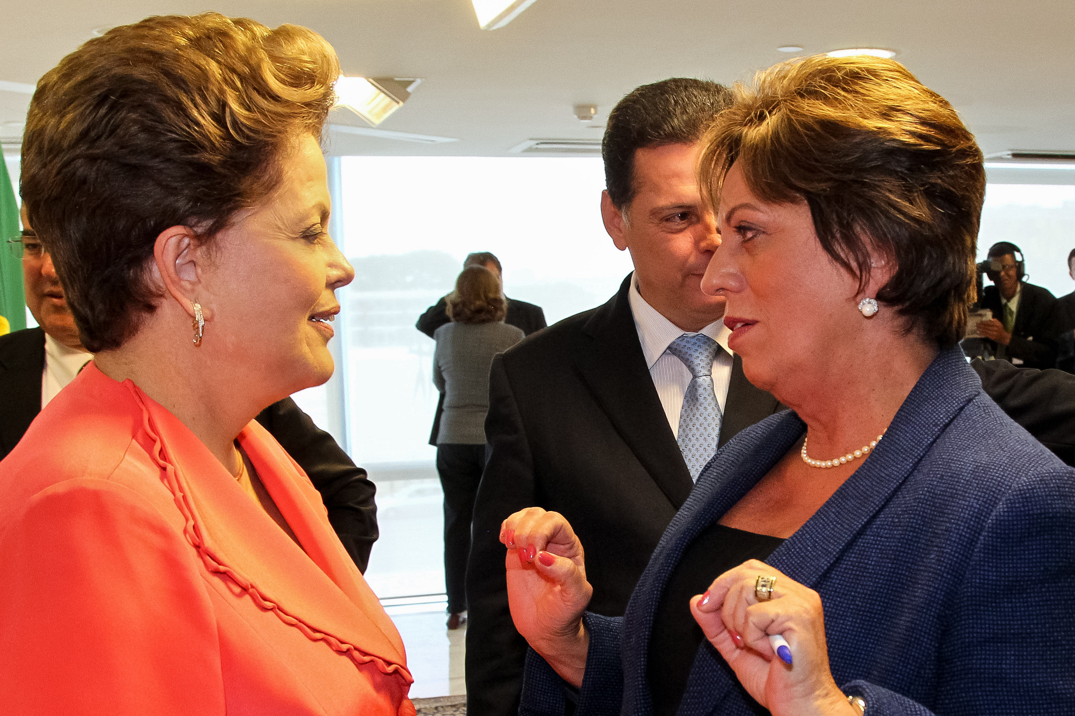 Presidenta Dilma Rousseff cumprimenta a Governadora do Rio Grande do Norte, Rosalba Ciarline durante assinatura do termo de entendimento para ampliação de crédito fiscal dos estados de Goiás, Rio Grande do Norte e Santa Catarina no Palácio do Planalto. (Brasília - DF, 16/02/2012)