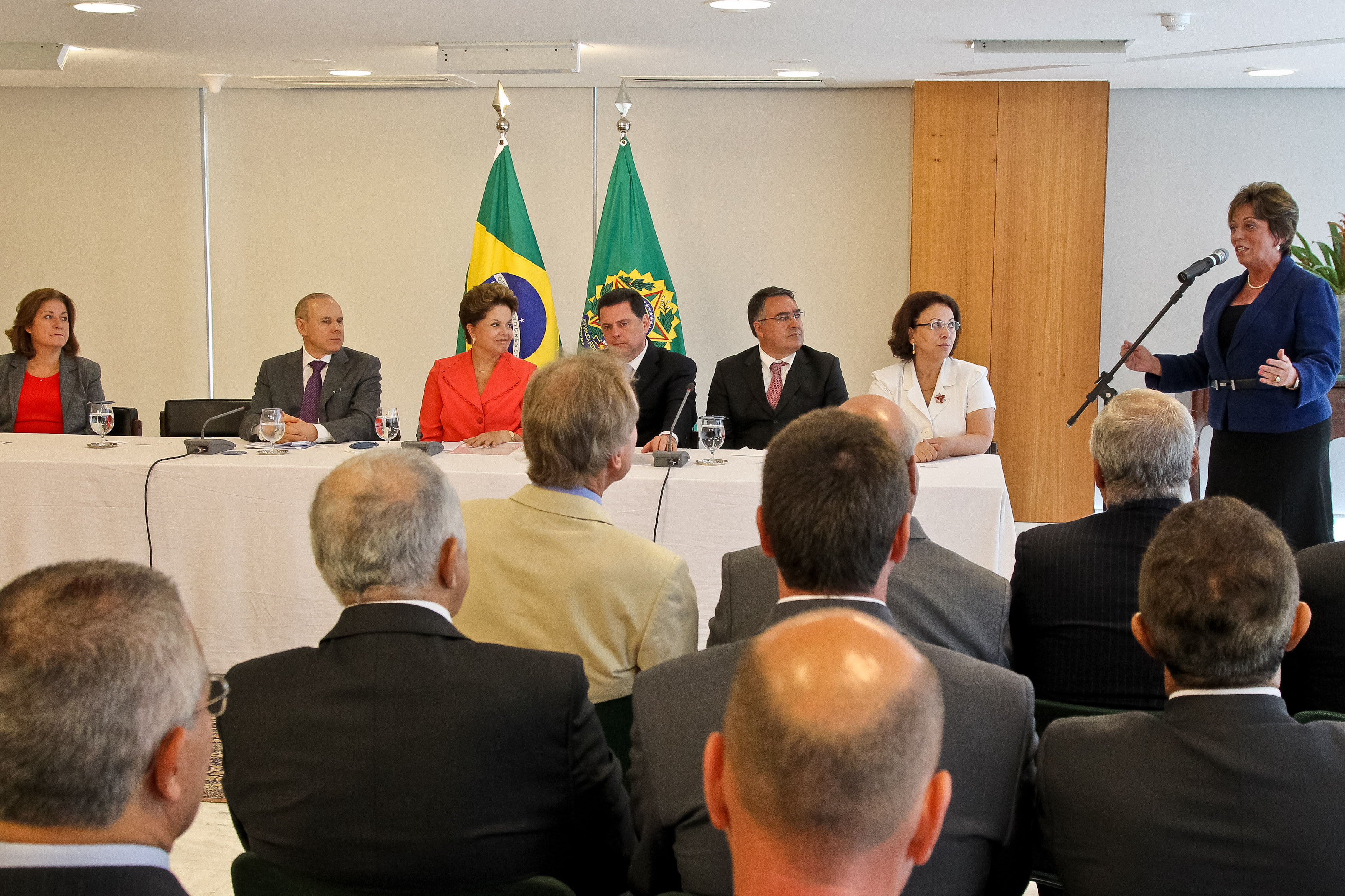Presidenta Dilma Rousseff durante o discurso da Governadora do Rio Grande do Norte, Rosalba Ciarline na cerimônia de assinatura do termo de entendimento para ampliação de crédito fiscal dos estados de Goiás, Rio Grande do Norte e Santa Catarina no Palácio do Planalto. (Brasília - DF, 16/02/2012)