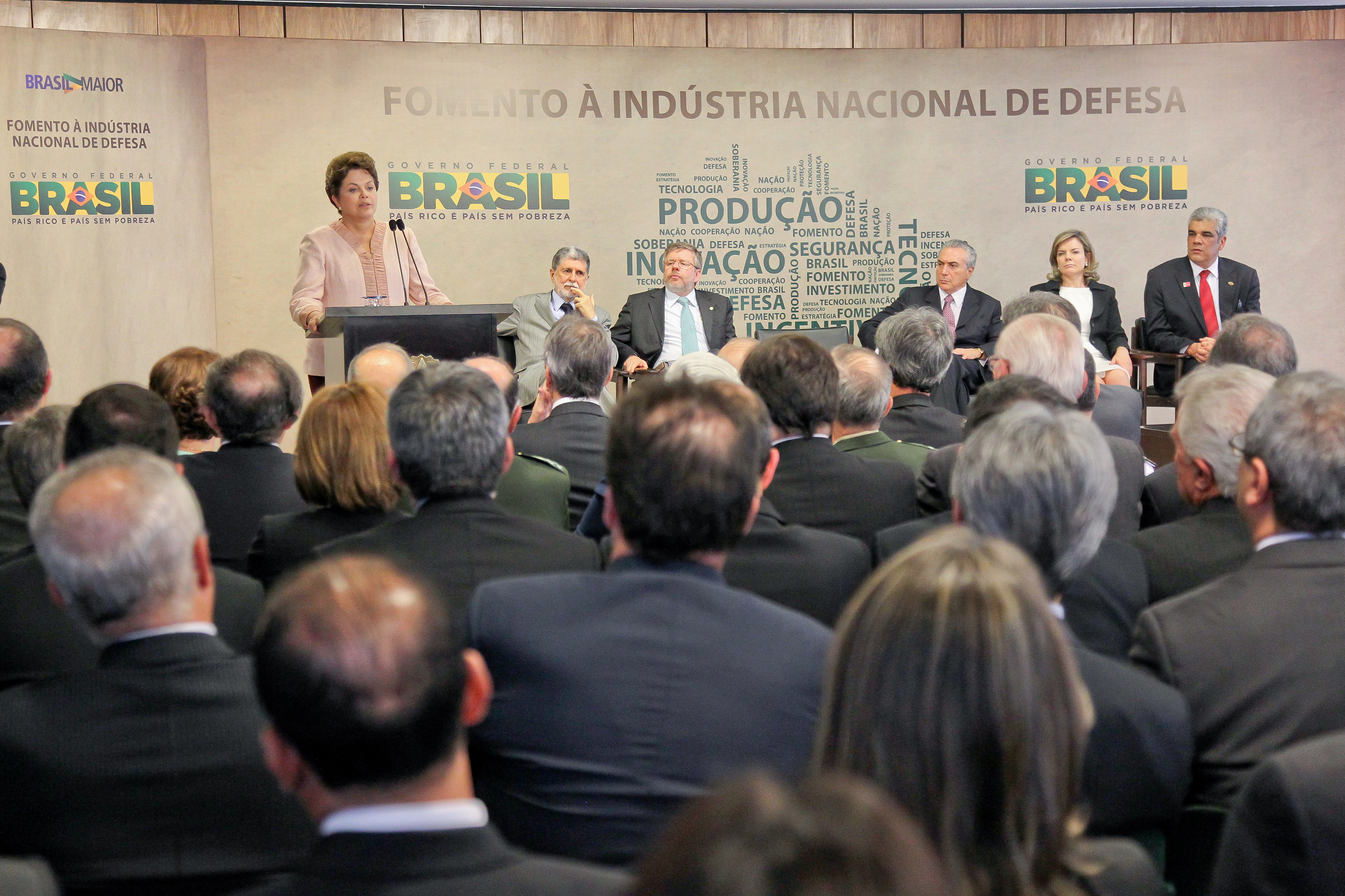 Presidenta Dilma Rousseff durante cerimônia de anúncio de Fomento à indústria Nacional de Defesa (Brasília-DF, 29/09/2011)