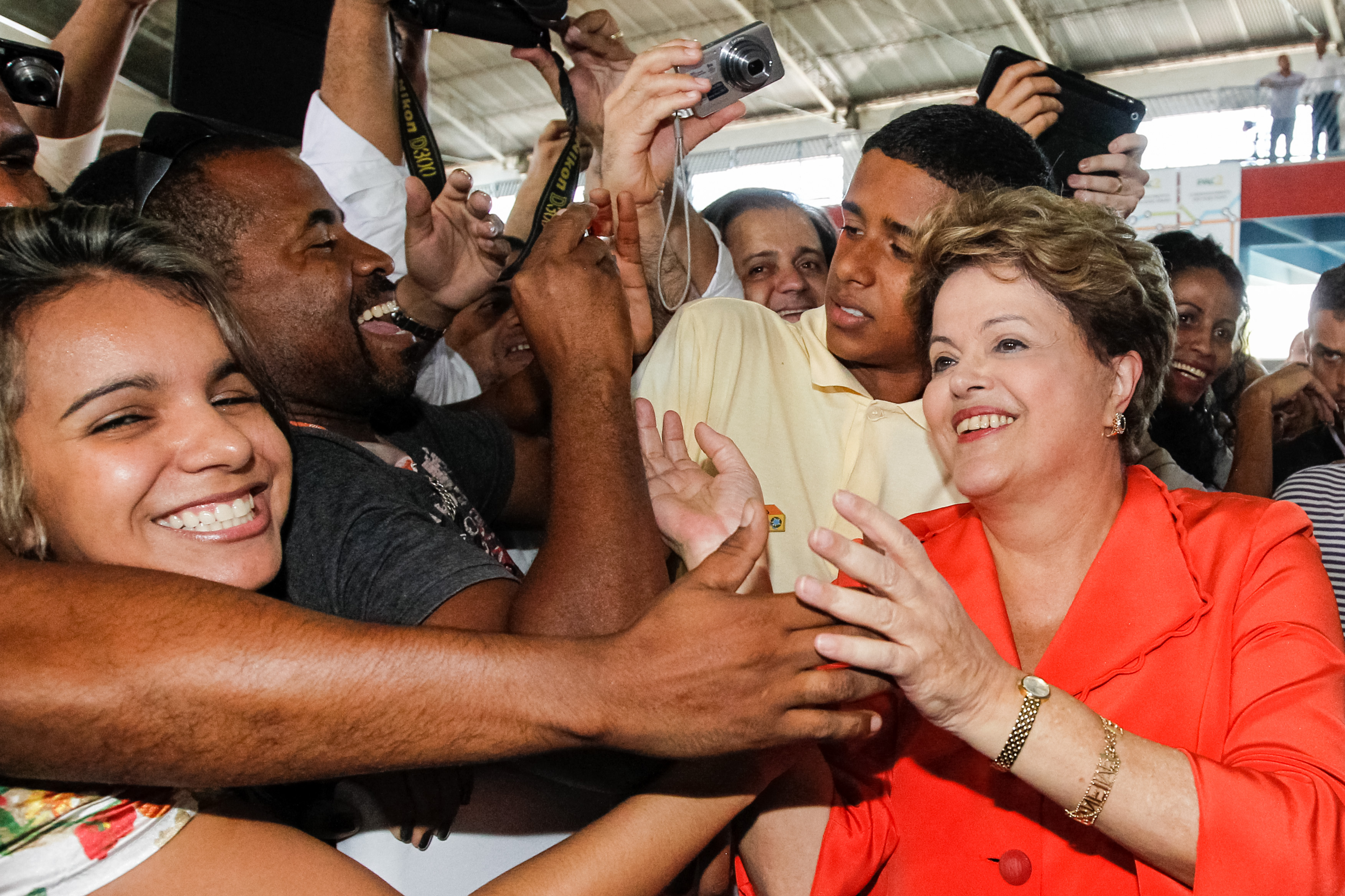 Presidenta Dilma Rousseff cumprimenta convidados após cerimônia de anúncio de investimentos para implantação da Linha 3 do Sistema Metropolitano do Rio de Janeiro - PAC 2 Mobilidade Urbana, em São Gonçalo. (São Gonçalo - RJ, 11/09/2013)