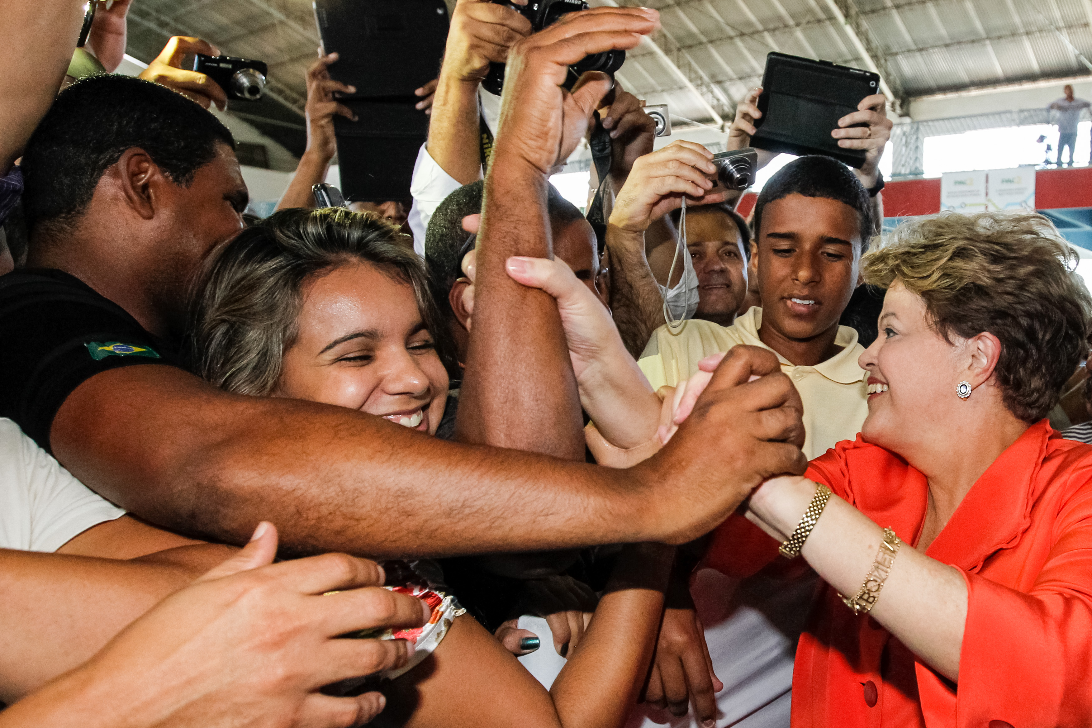 Presidenta Dilma Rousseff cumprimenta convidados após cerimônia de anúncio de investimentos para implantação da Linha 3 do Sistema Metropolitano do Rio de Janeiro - PAC 2 Mobilidade Urbana, em São Gonçalo. (São Gonçalo - RJ, 11/09/2013)