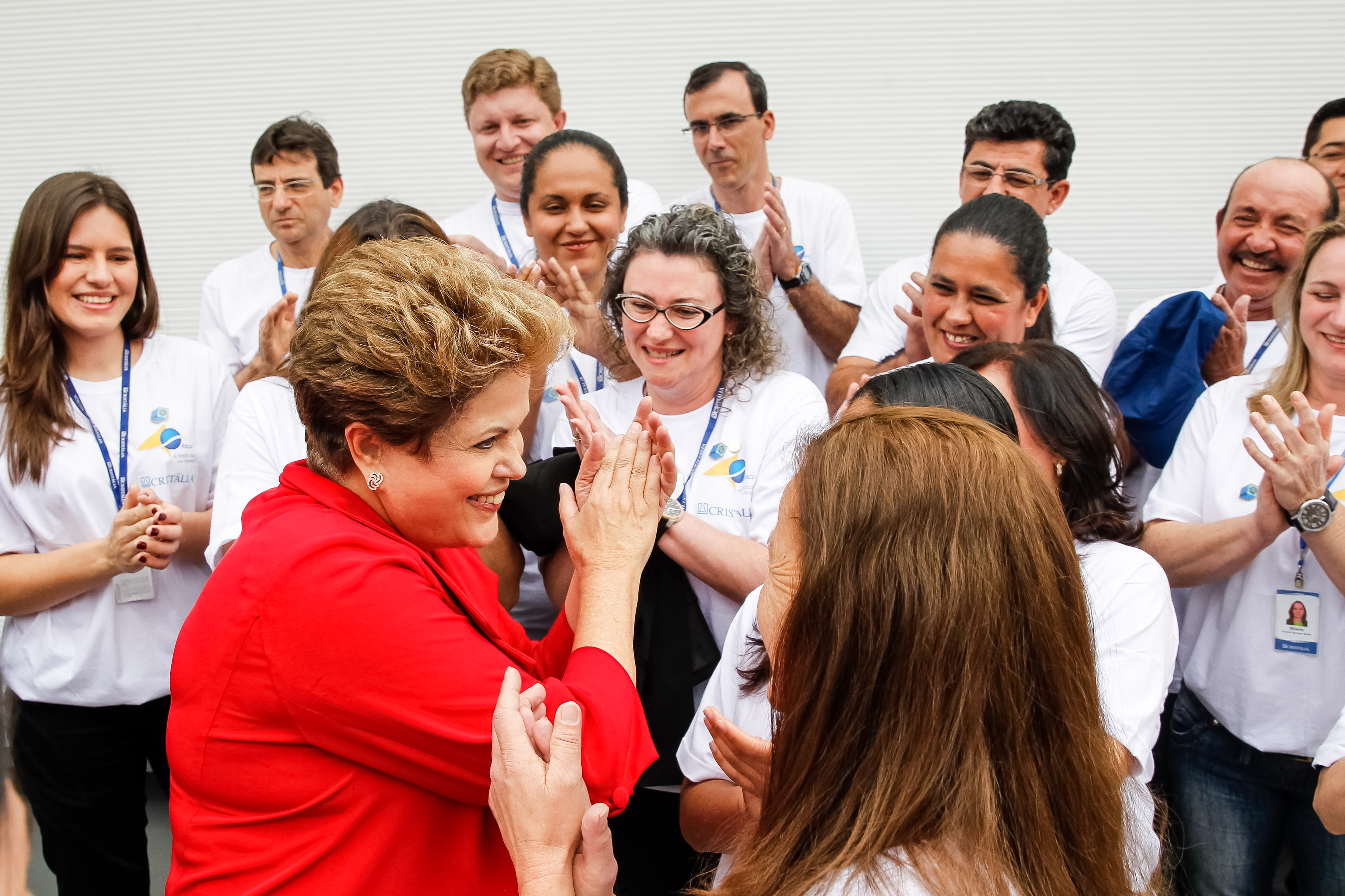 Presidenta Dilma Rousseff posa para foto com trabalhadores durante cerimônia de inauguração da nova fábrica de biotecnologia e de citotásticos e ampliação da farmoquímica do Complexo Industrial Cristália. (Itapira - SP, 13/08/2013)