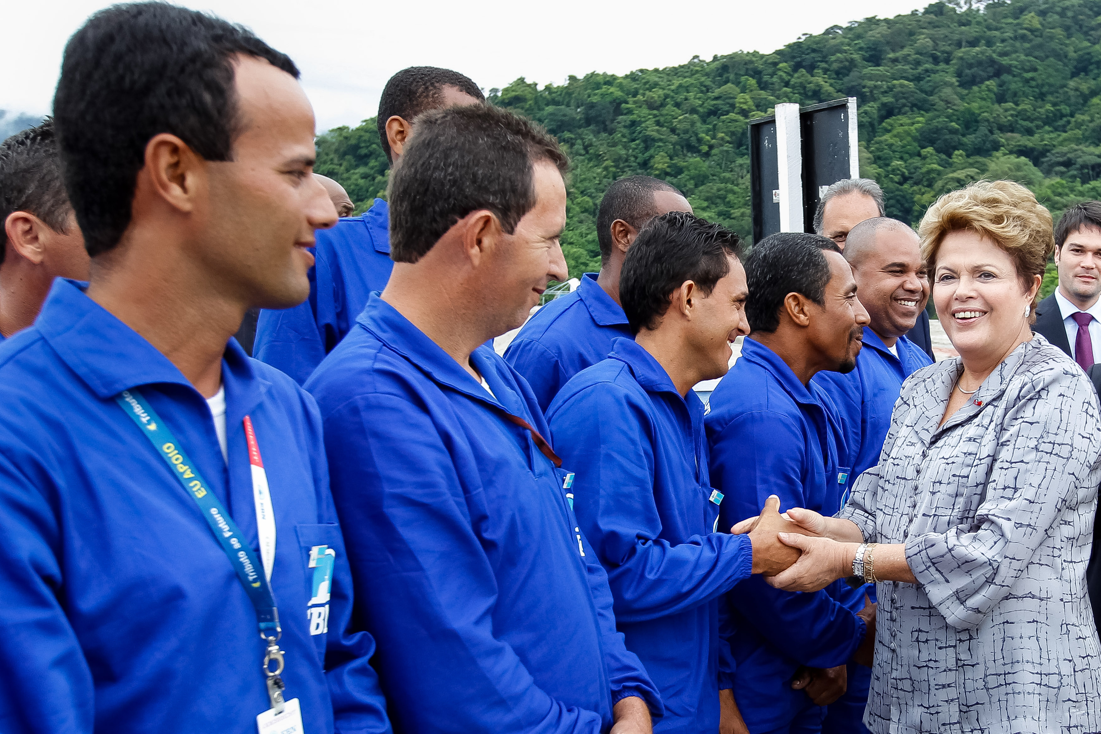 Presidenta Dilma Rousseff cumprimenta trabalhadores durante cerimônia de inauguração da Unidade de Fabricação de Estruturas Metálicas - UFEM. (Itaguaí - RJ, 01/03/2013)