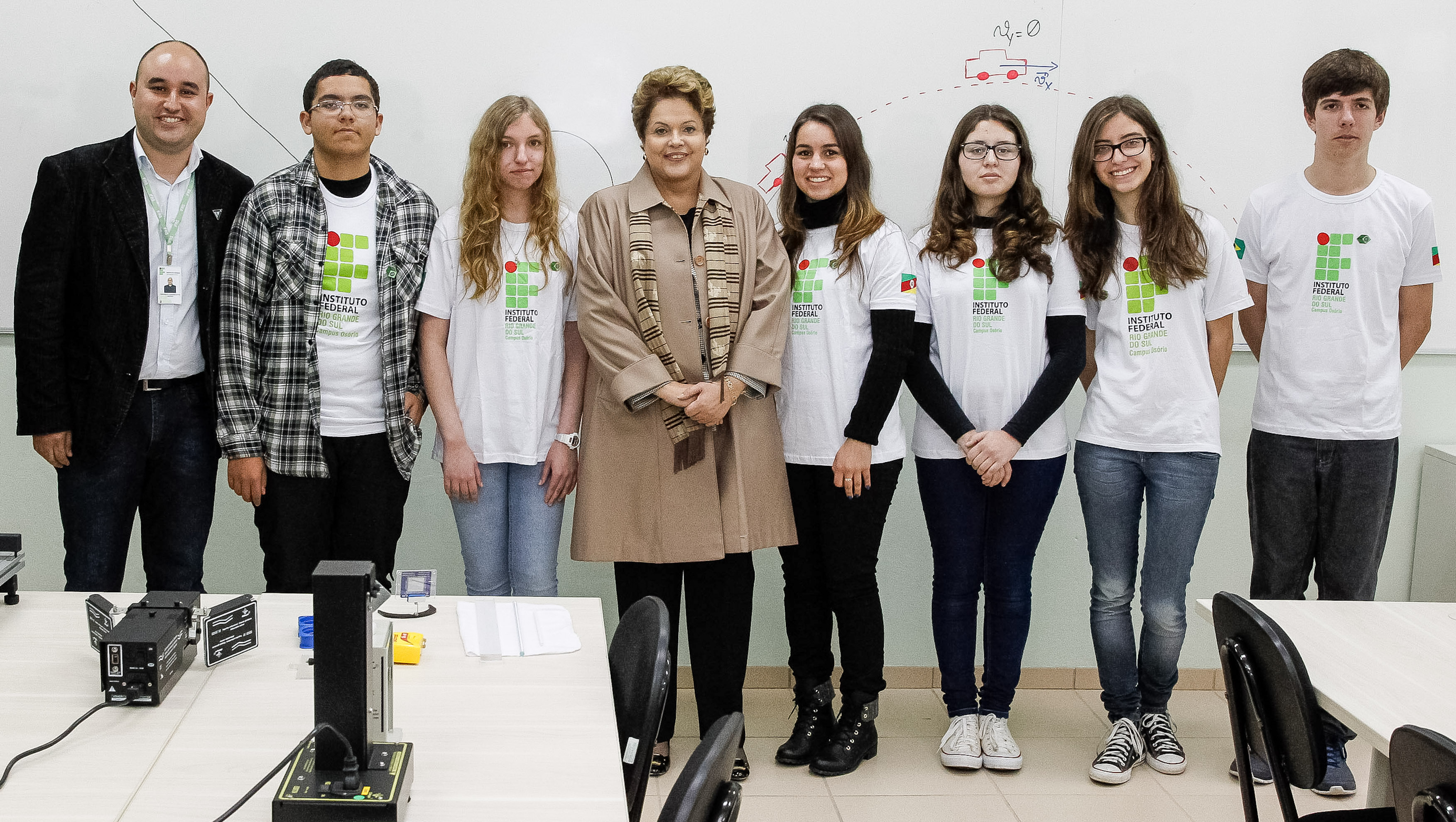 Presidenta Dilma Rousseff posa para foto com professor e alunos durante a visitação das instalações do Campus Osório do Instituto Federal do Rio Grande do Sul - IFRS . (Osório - RS, 09/08/2013).