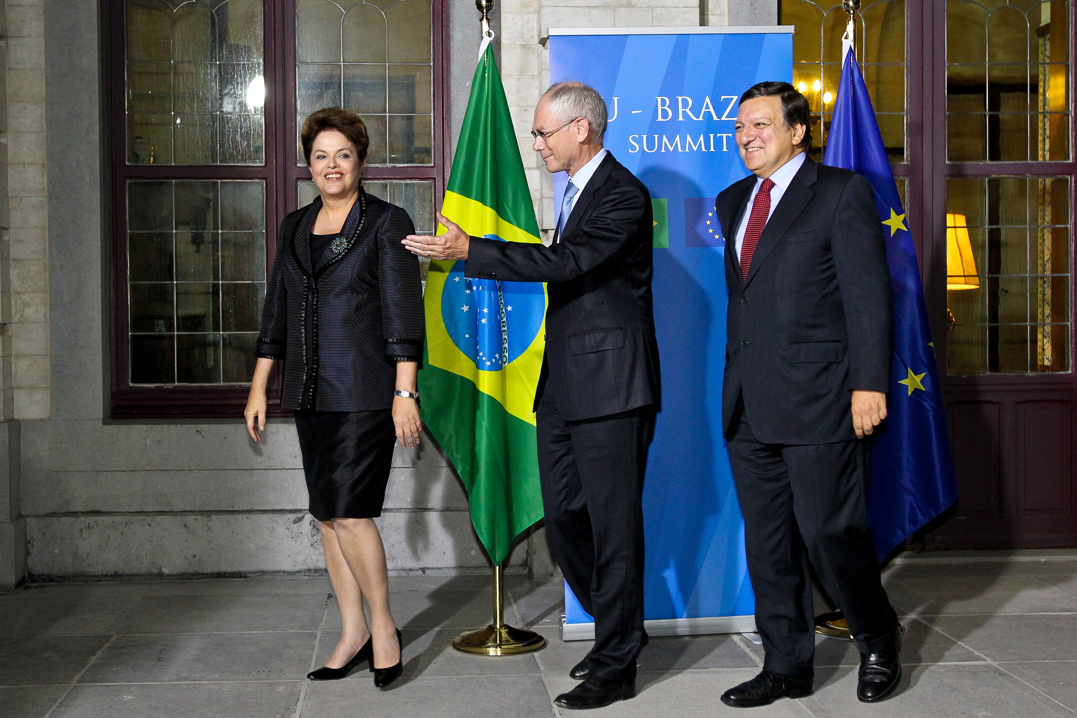 Presidenta Dilma Rousseff posa para foto com o Presidente do Conselho Europeu, Senhor Herman Van Rompuy e o Presidente da Comissão Européia, Senhor José Manuel Durão Barroso no Castelo de Val Duchesse. (Bruxelas - BEL, 03/10/2011)