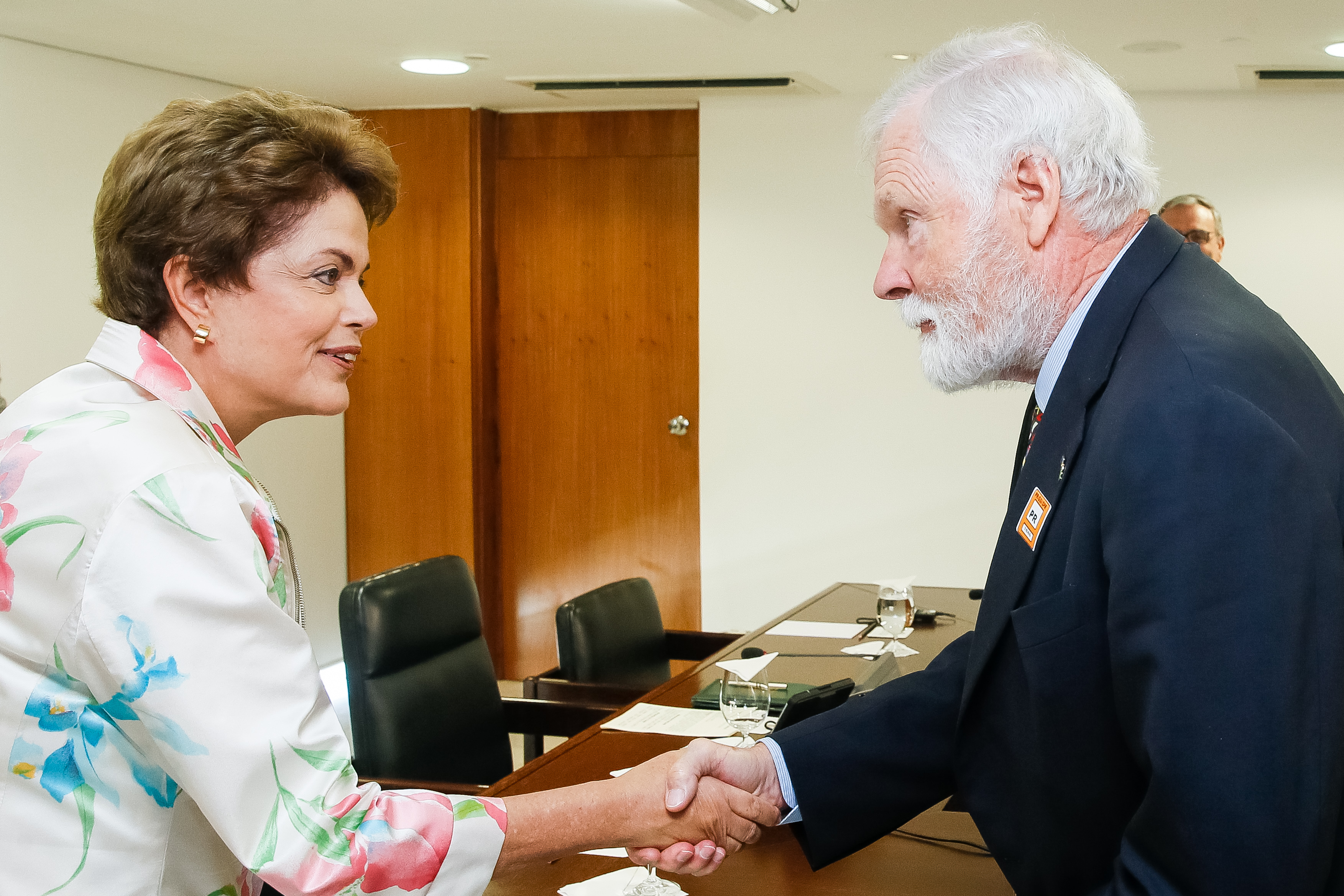 Presidenta Dilma Rousseff cumprimenta Ted Tunner, Fundador e Presidente da Fundação das Nações Unidas - USA durante encontro com o Jorge Chediek e membros da UN Foundation, Coordenador Residente das Nações Unidas no Brasil. (Brasília - DF, 07/05/2015)