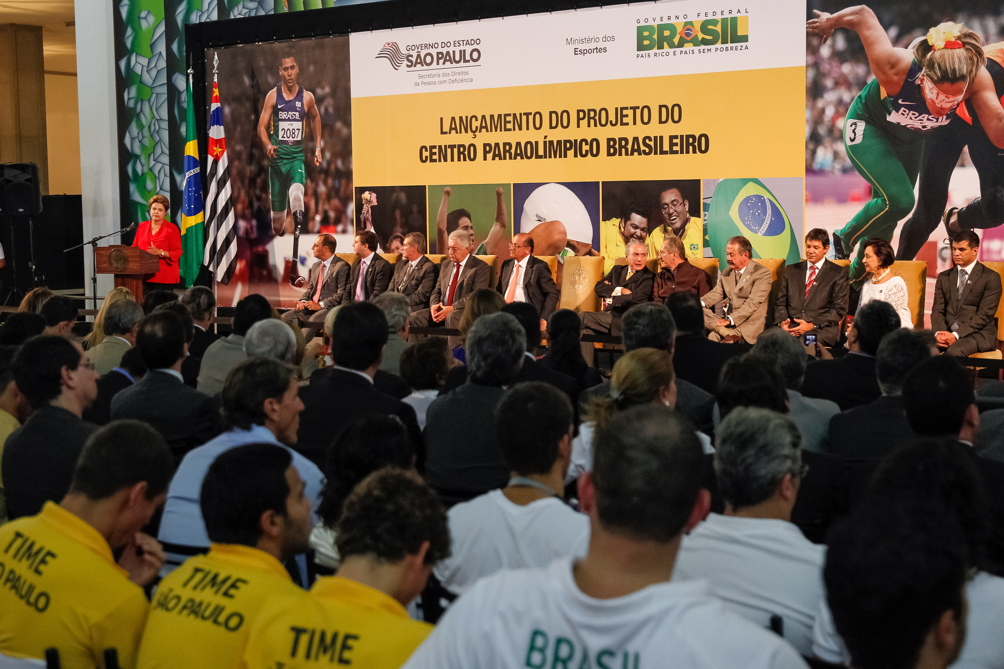 Presidenta Dilma Rousseff durante cerimônia de lançamento do projeto do centro Paraolímpico Brasileiro. (São Paulo, SP 25/01/2013)