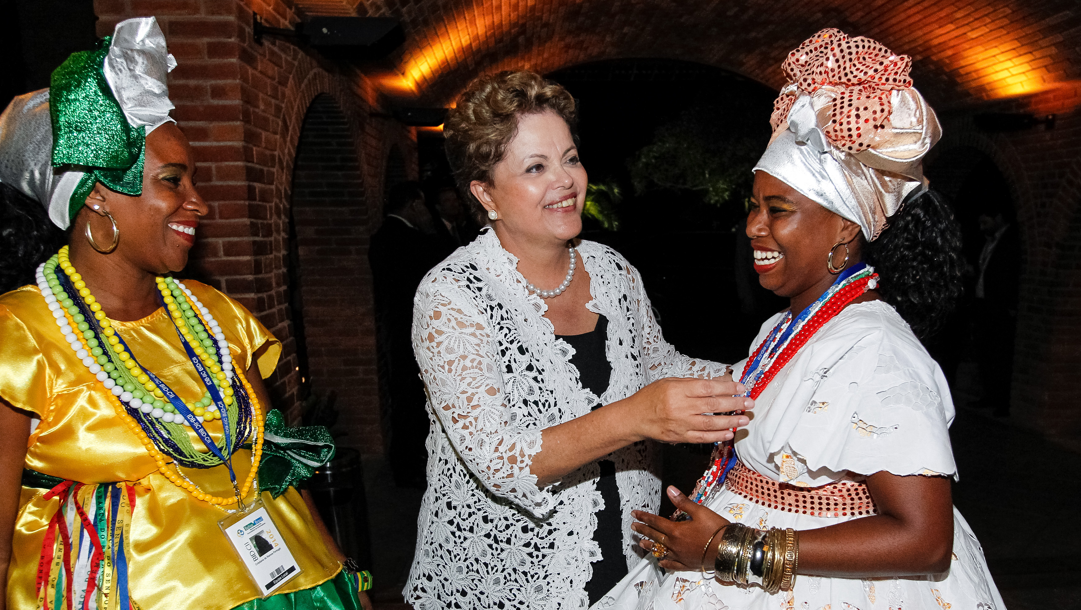 Presidenta Dilma Rousseff posa para foto com baianas após sessão inaugural da LV Reunião Anual do Banco Interamericano de Desenvolvimento - BID. (Costa do Sauípe - BA, 29/03/2014)