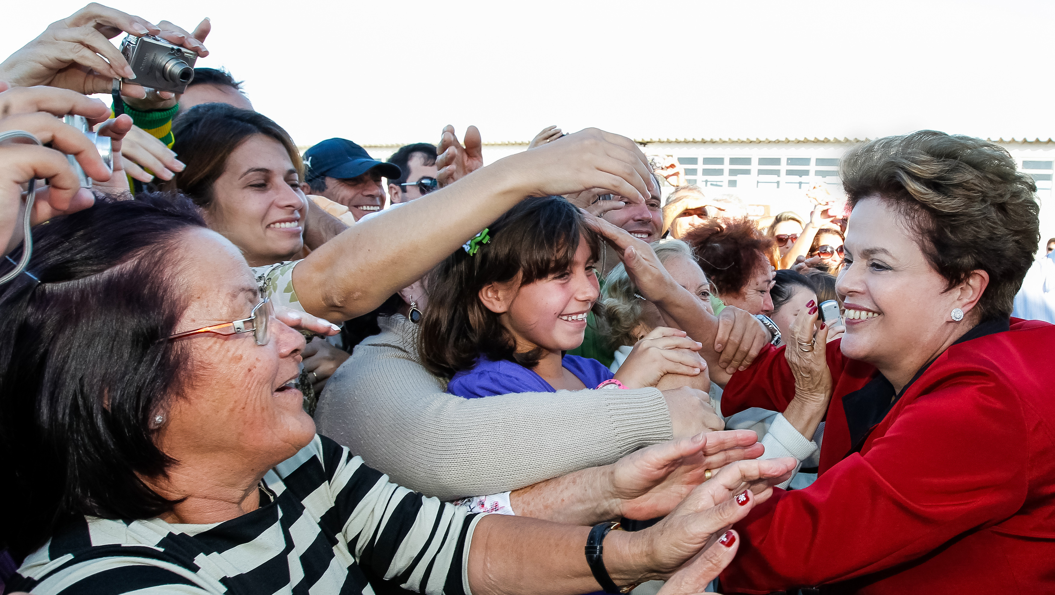 Presidenta Dilma Rousseff cumprimenta populares após cerimônia de assinatura da ordem de serviço das obras de construção da ponte sobre a Lagoa do Imaruí - BR-101. (Laguna - SC, 21/05/2012)