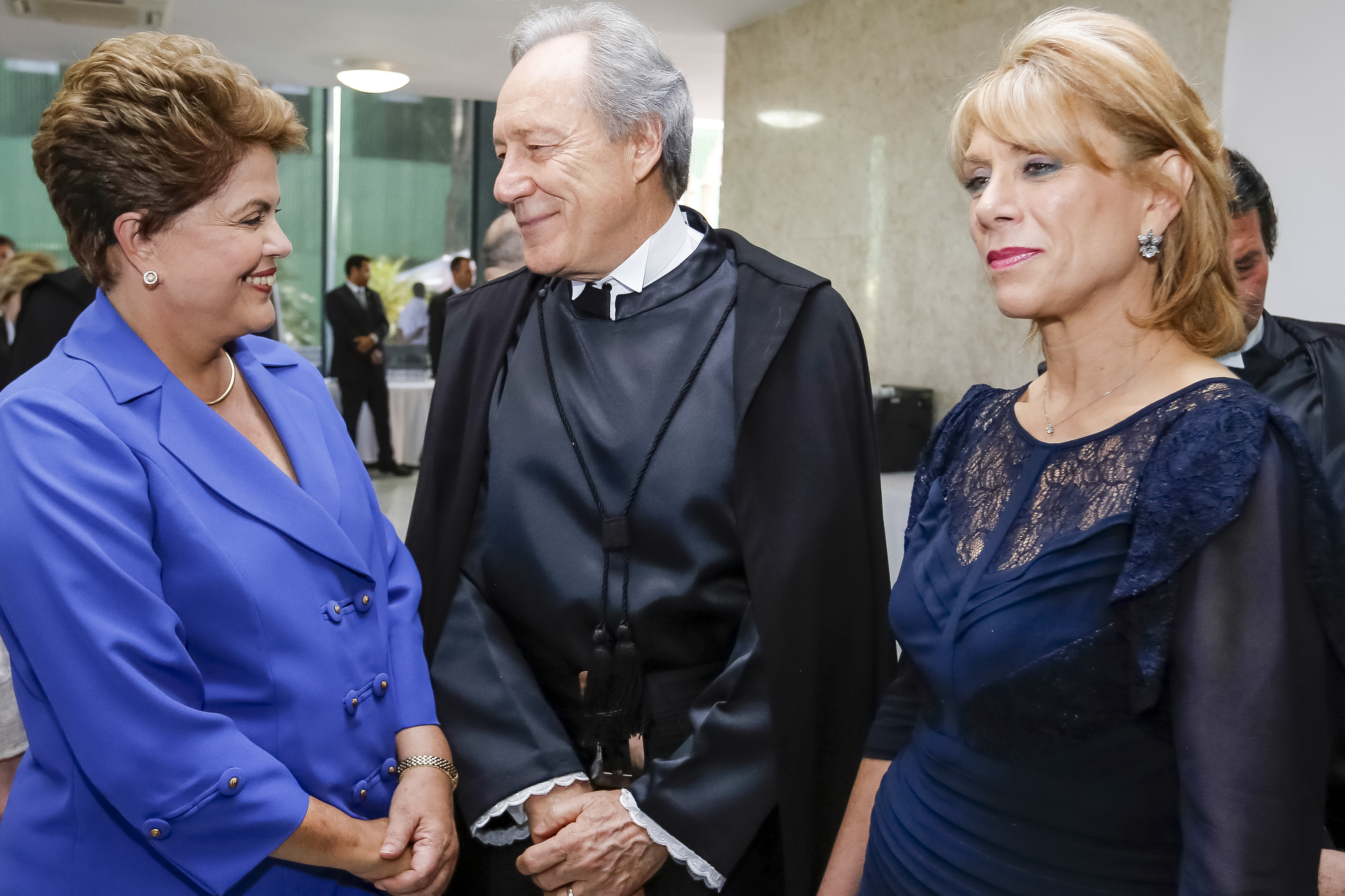 Presidenta Dilma Rousseff cumprimenta o Ministro Ricardo Lewandowski e sua esposa Yara de Abreu Lewandowski durante sessão solene de posse no Supremo Tribunal Federal. (Brasília - DF, 10/09/2014)