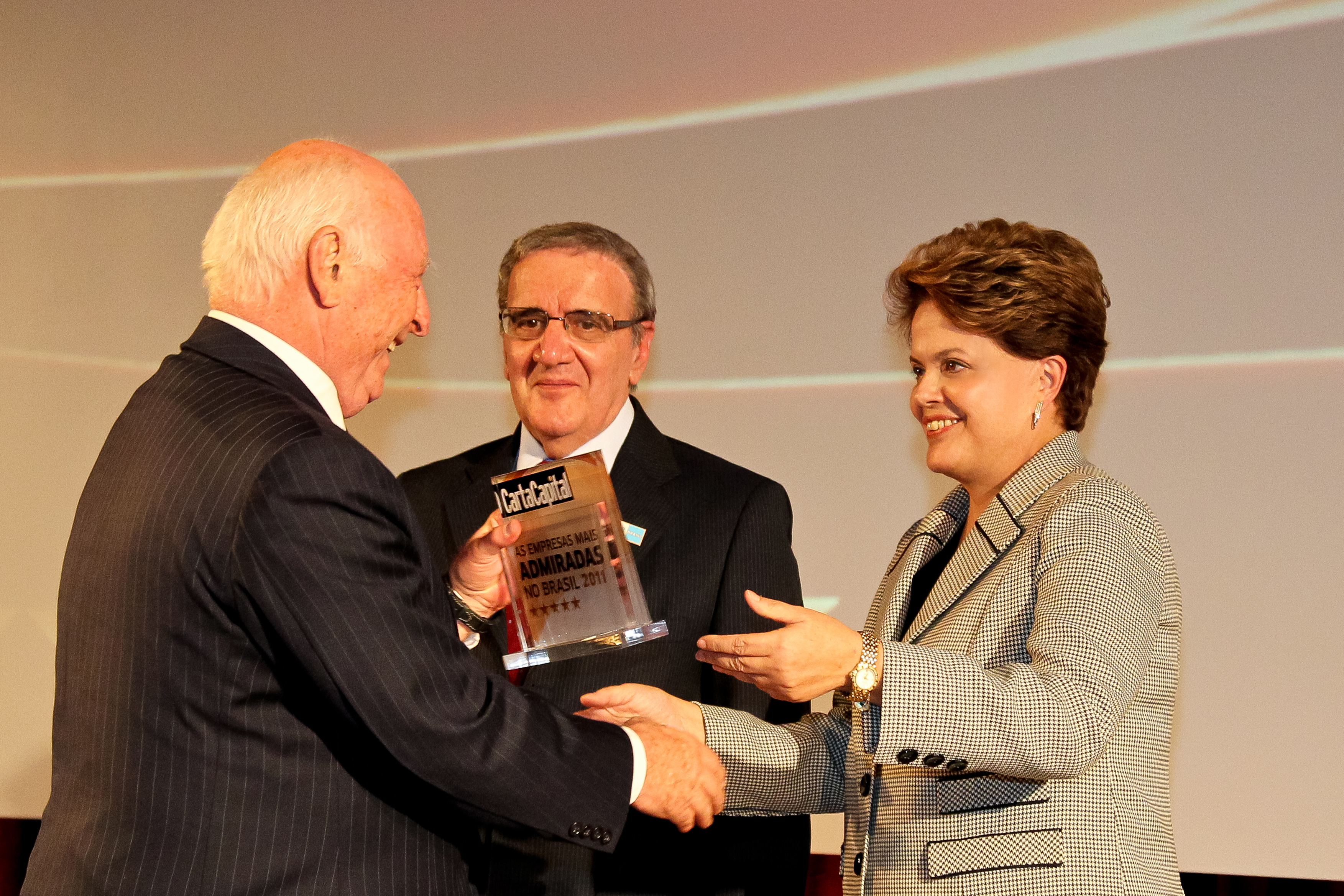 Presidenta Dilma Rousseff entrega o Prêmio ao senhor Jorge Gerdau durante cerimônia de entrega do Prêmio “As Empresas Mais Admiradas do Brasil”, oferecido pela revista Carta Capital. (São Paulo - SP, 31/10/2011)