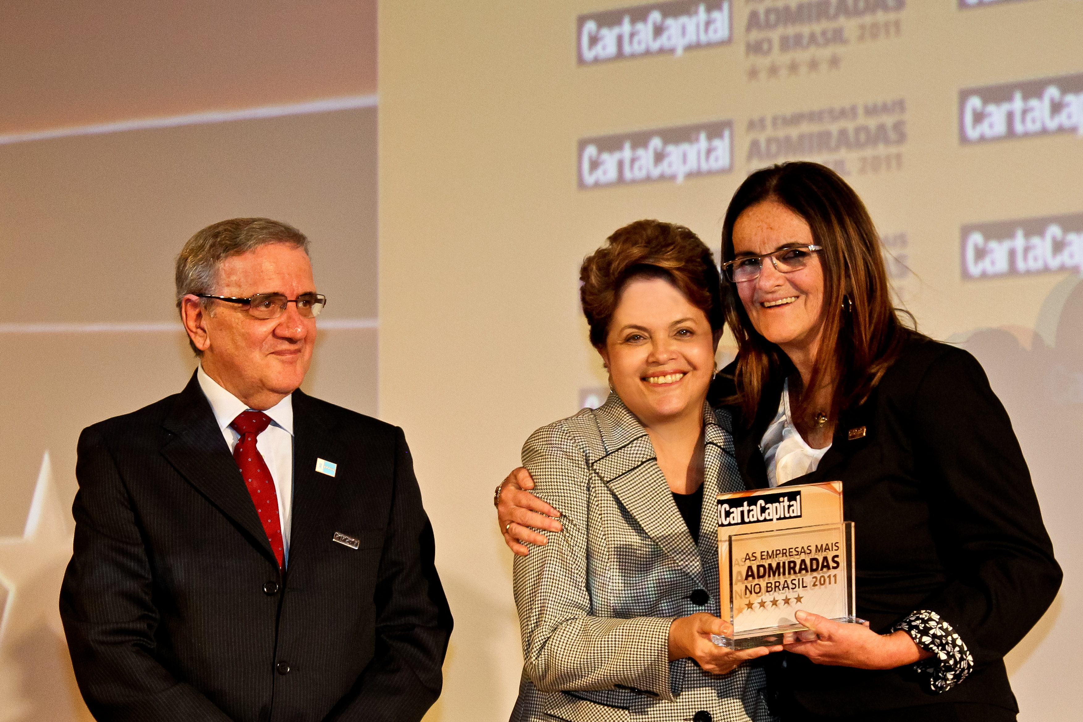 Presidenta Dilma Rousseff entrega o Prêmio a senhora Graça Foster durante cerimônia de entrega do Prêmio “As Empresas Mais Admiradas do Brasil”, oferecido pela revista Carta Capital. (São Paulo - SP, 31/10/2011)