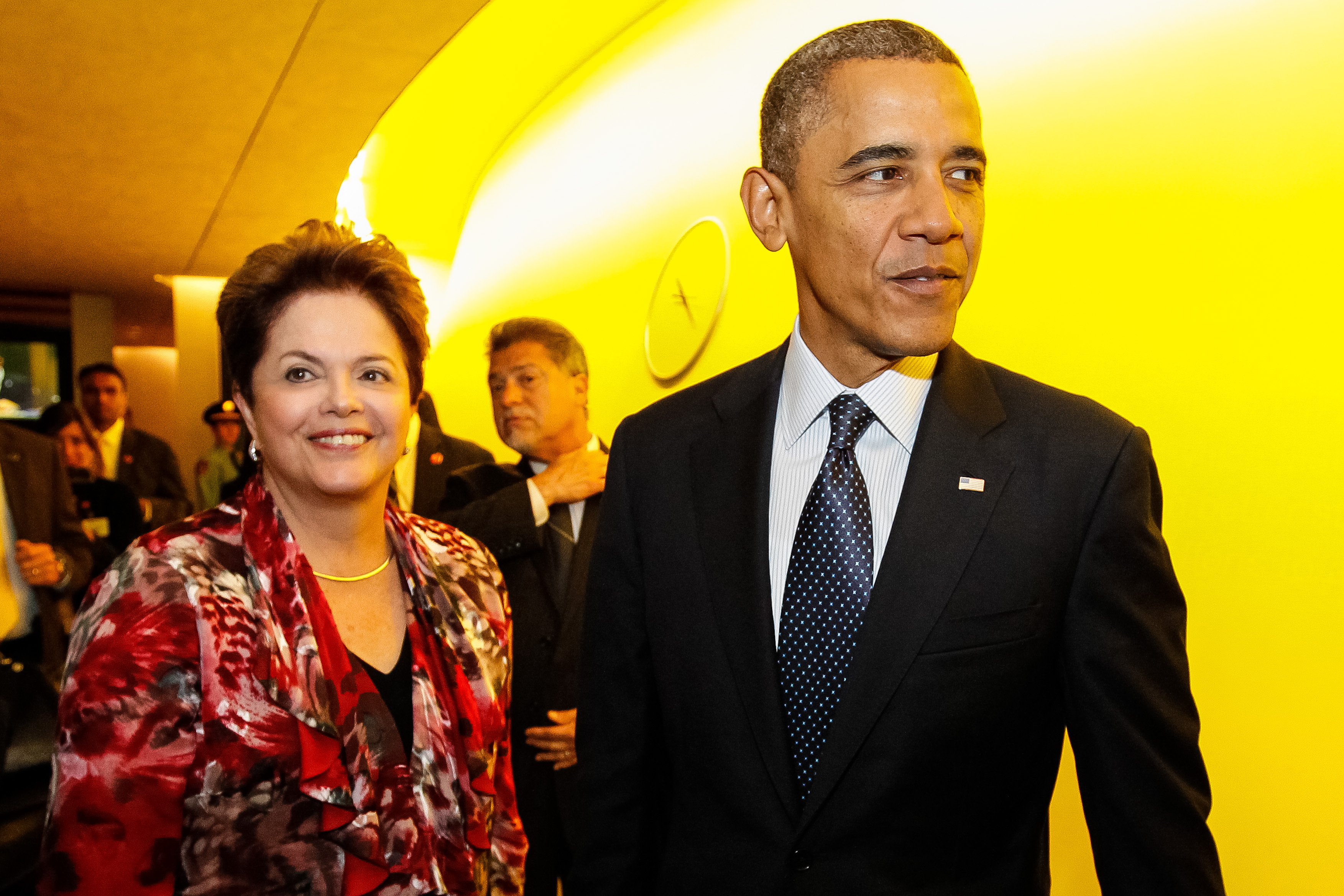 Presidenta Dilma Rousseff recebe cumprimentos do Presidente dos Estado Unidos Barack Obama após discurso na abertura da 67ª Assembleia-Geral das Nações Unidas. (Nova Iorque - EUA, 25/09/2012)